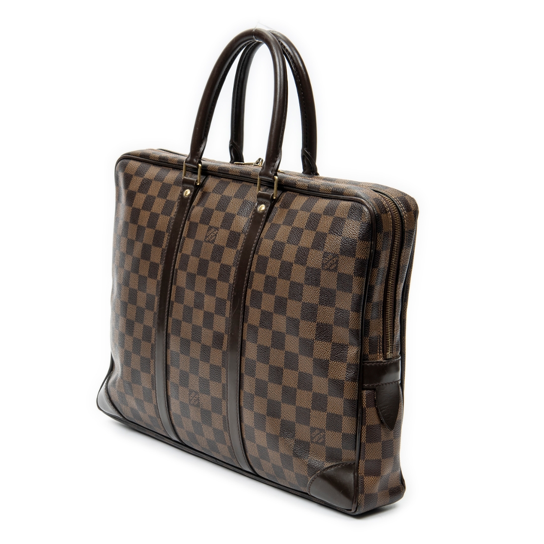 A vintage Louis Vuitton damier coated canvas Porte Documents-Voyage bag with a certificate of authenticity. Approximately 30cm height, 41cm width.