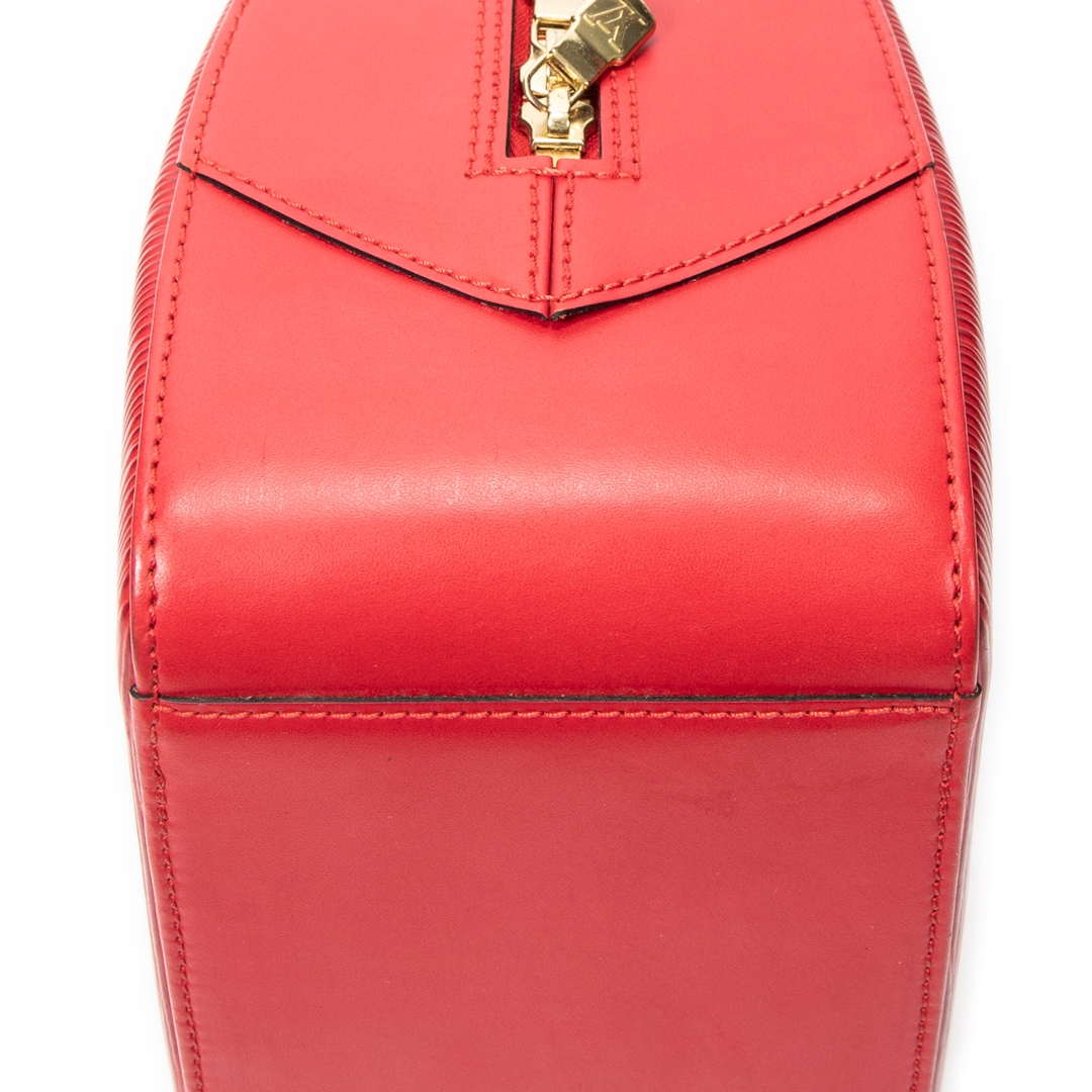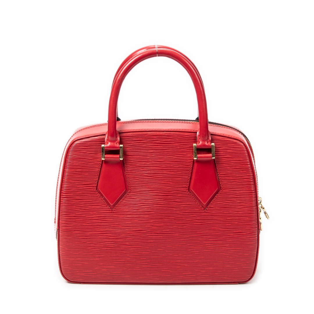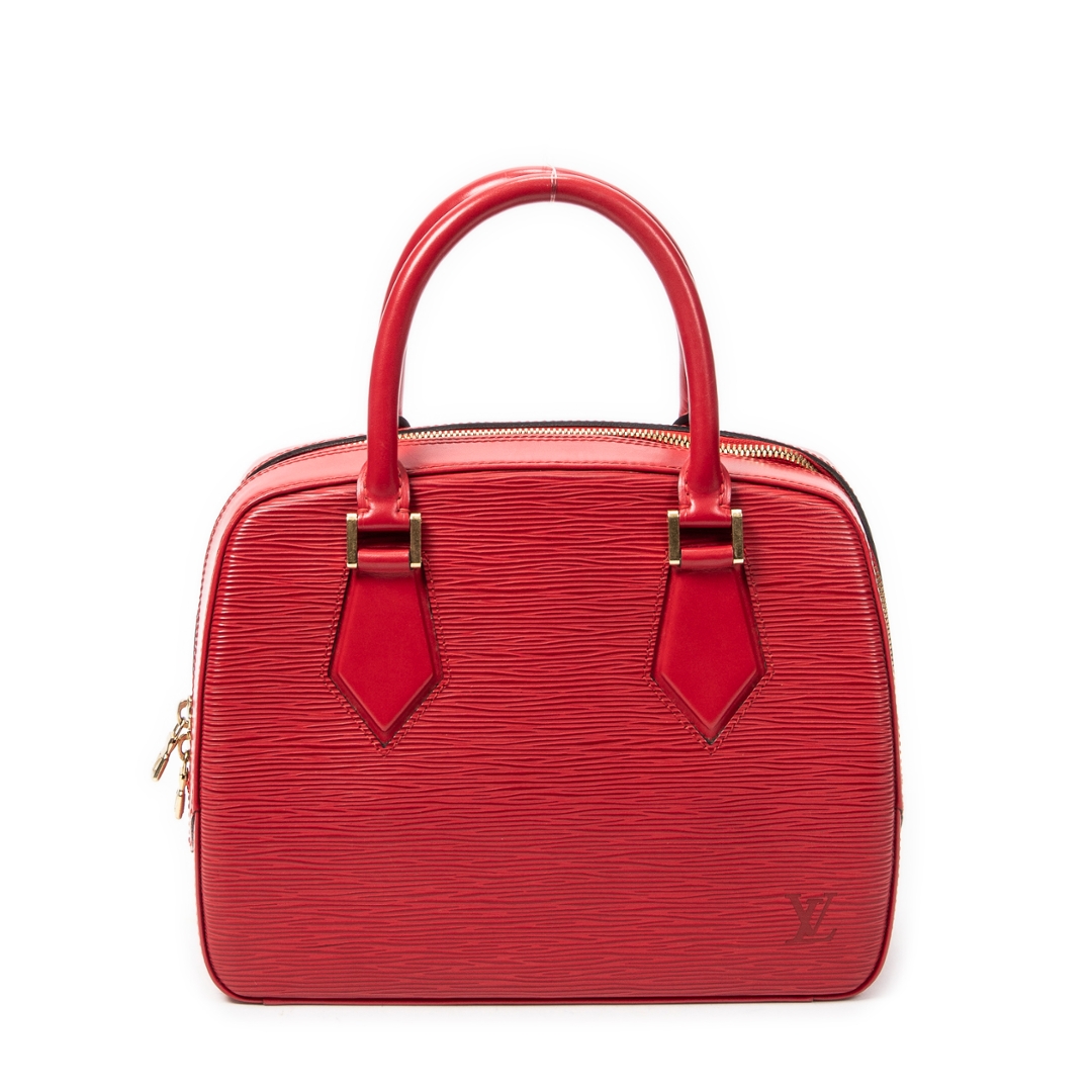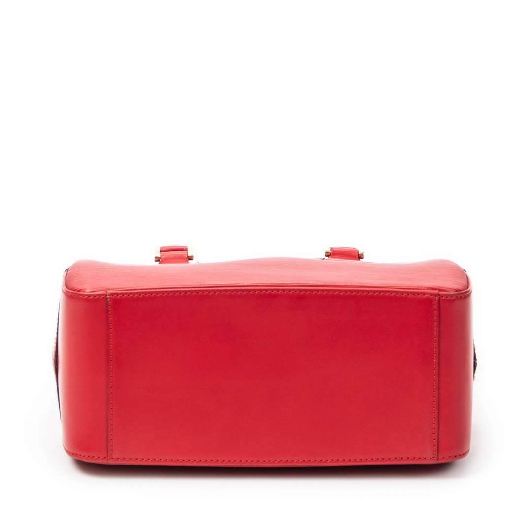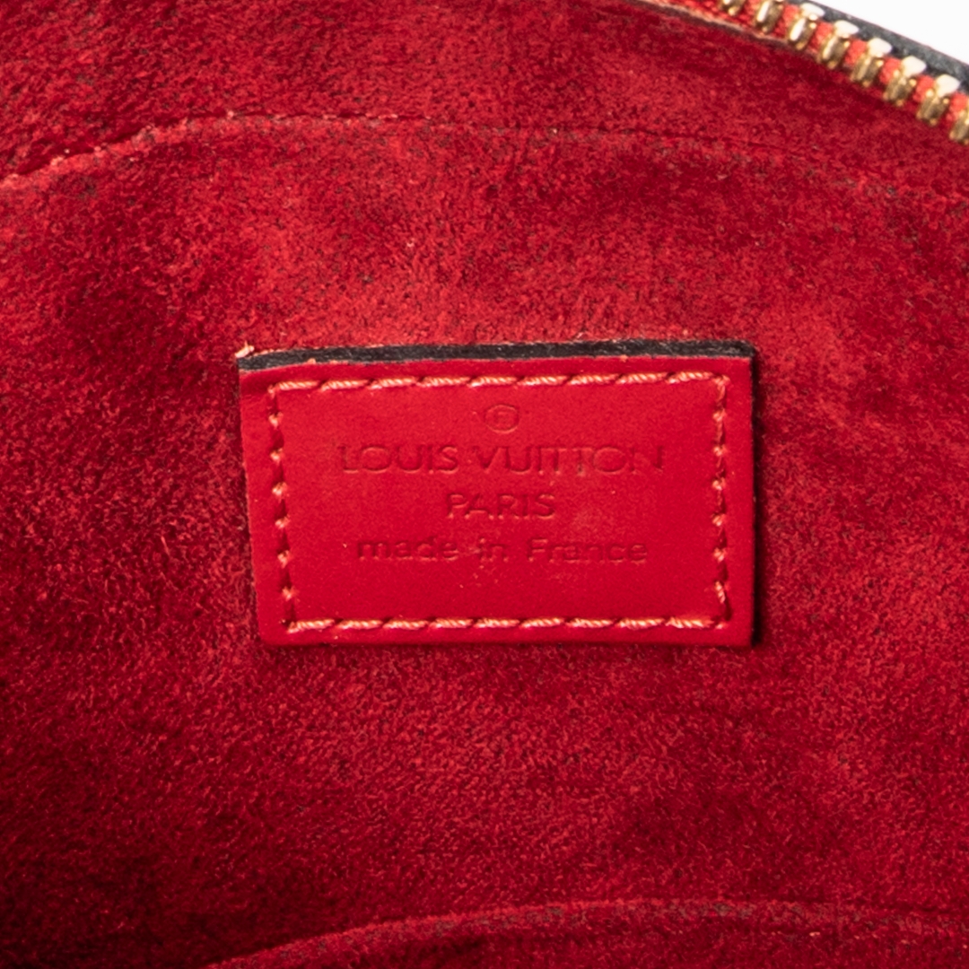 A vintage Louis Vuitton red calf leather Sablons bag with a certificate of authenticity. Approximately 20cm height, 26cm width.