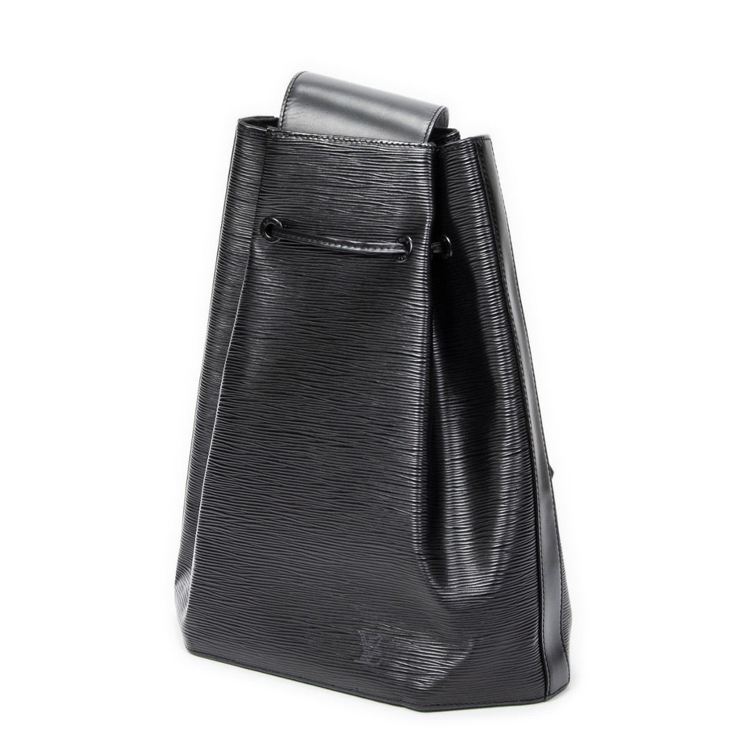 A vintage Louis Vuitton black calf leather Sac A Dos bag with a certificate of authenticity. Approximately 36cm height, 30cm width.