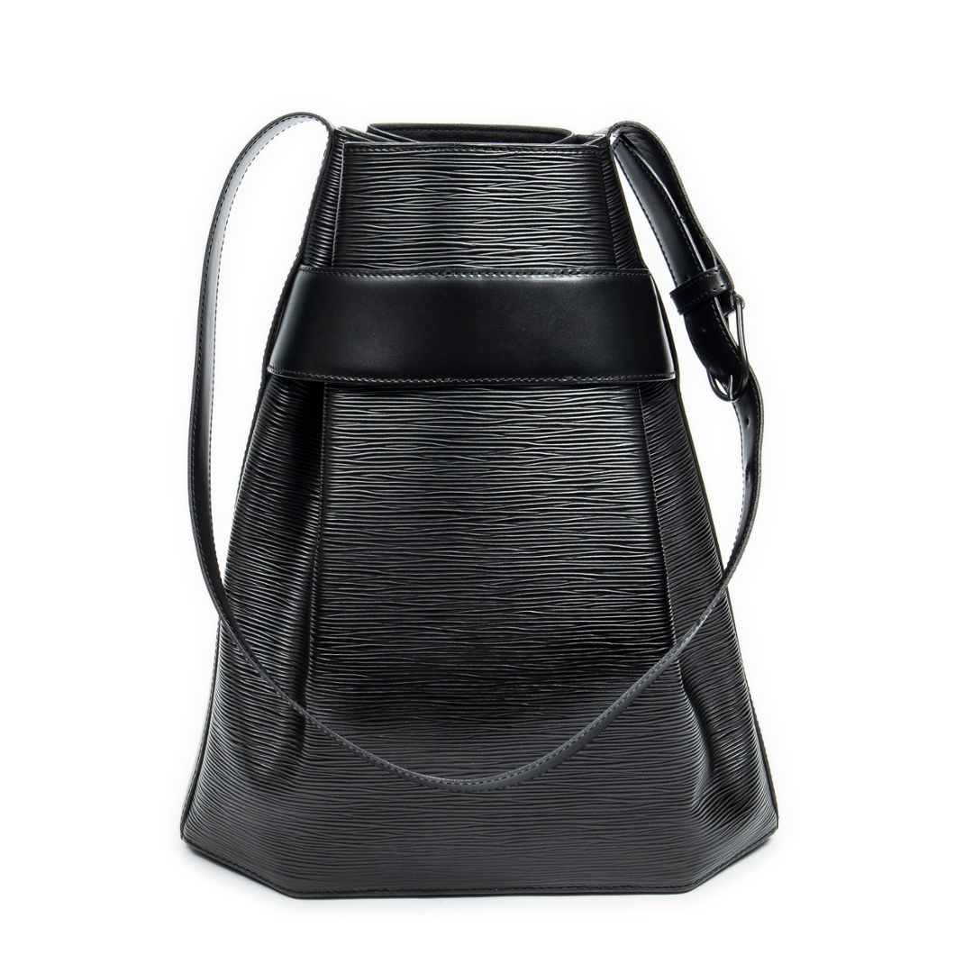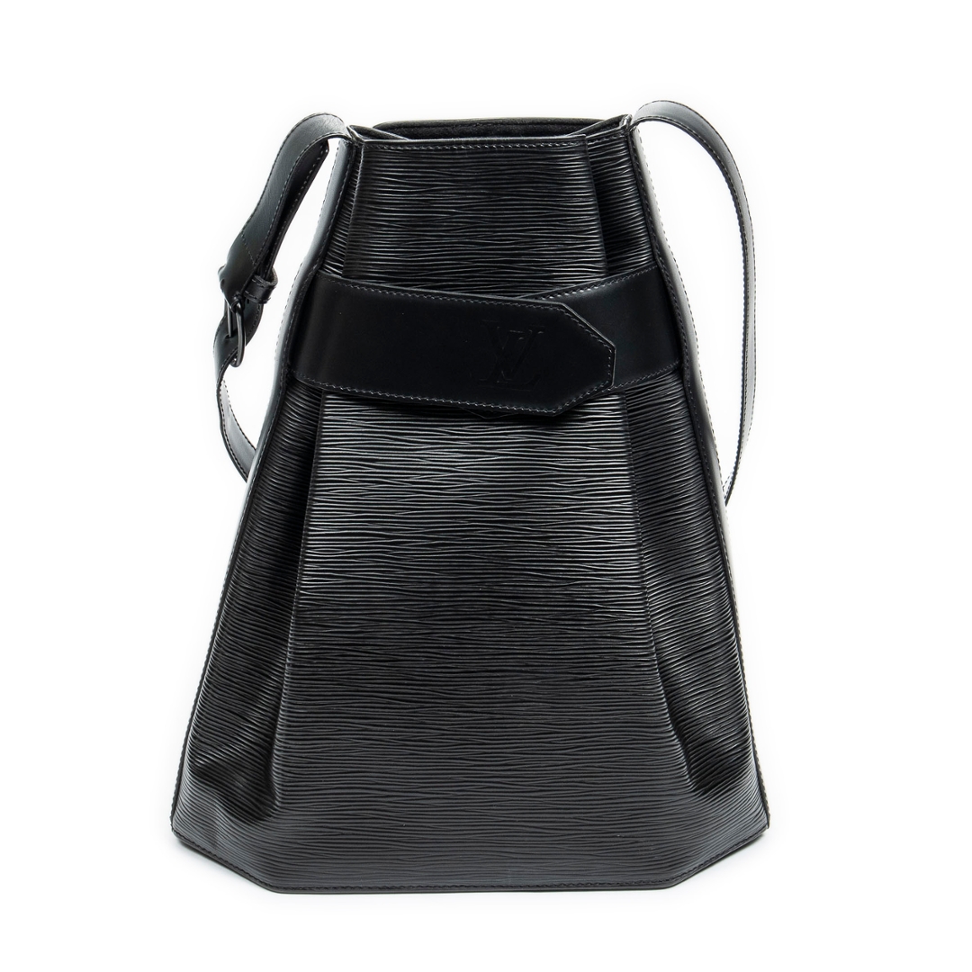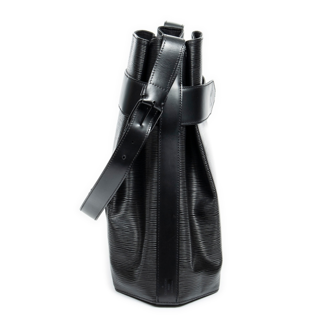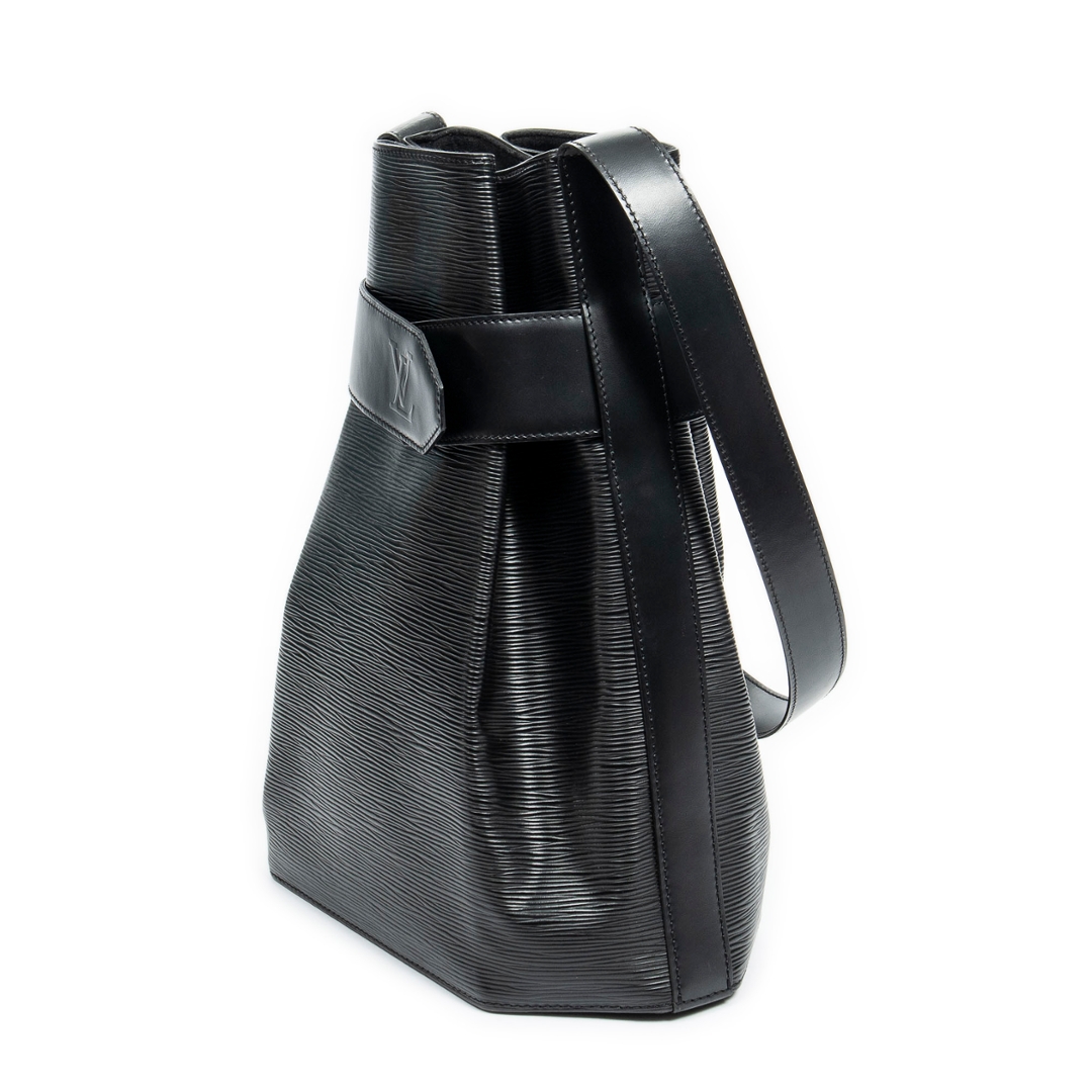 A vintage Louis Vuitton black calf leather Sac D'Epaule bag with a certificate of authenticity, Approximately 36cm height, 30cm width.