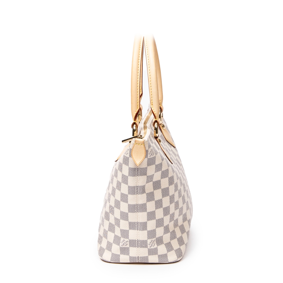 A vintage Louis Vuitton ivory coated canvas Saleya bag with a certificate of authenticity. Approximately 24cm height, 27cm width.