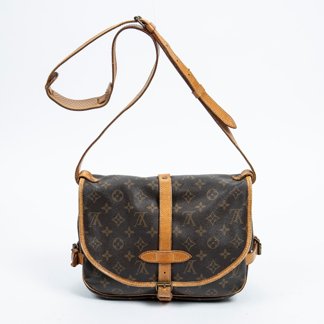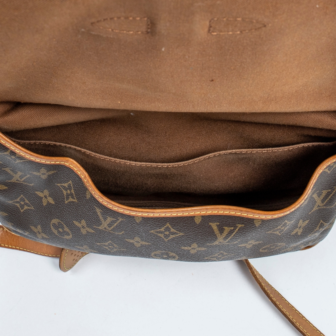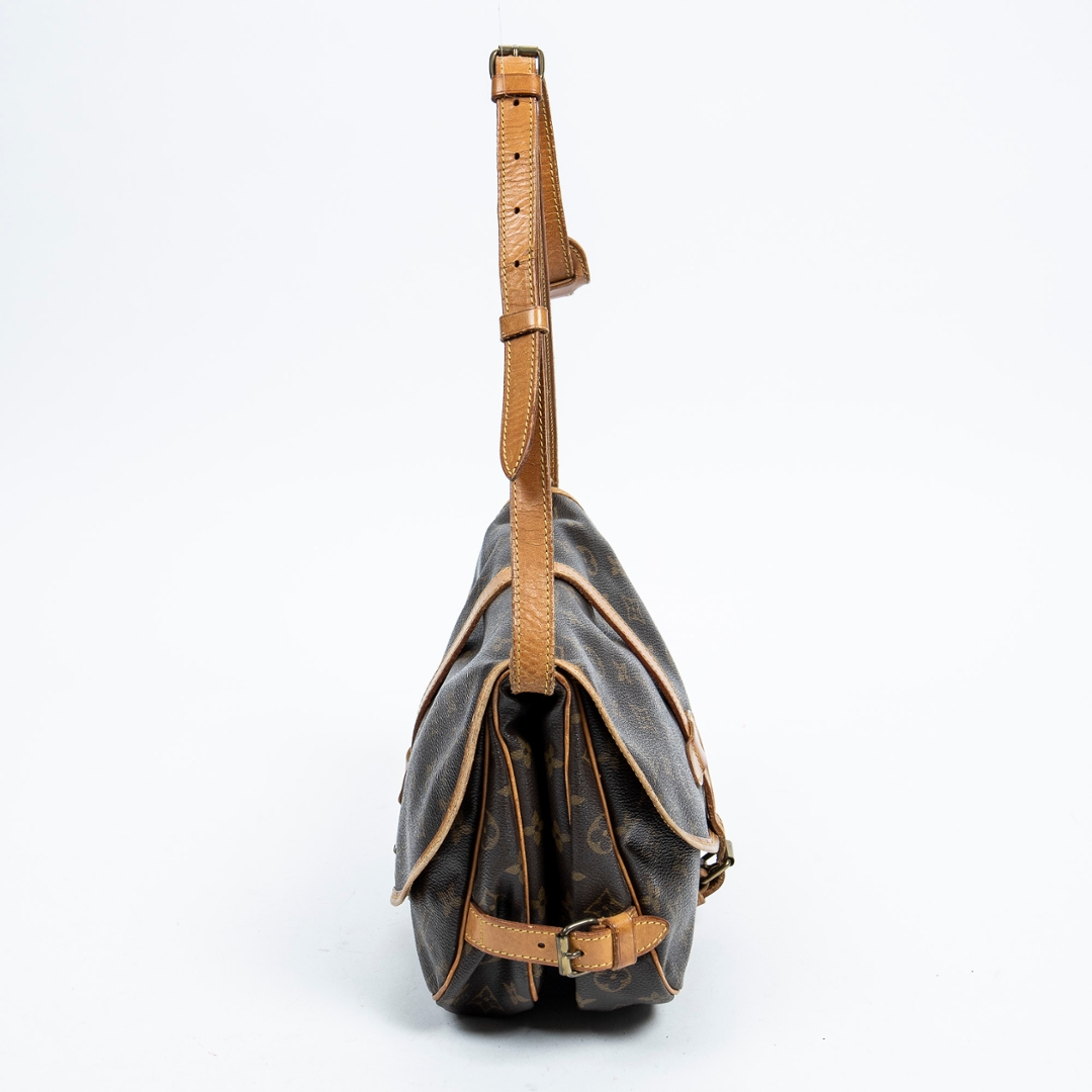 A vintage Louis Vuitton monogram coated canvas Saumur bag with a certificate of authenticity. Approximately 20cm height, 30cm width.