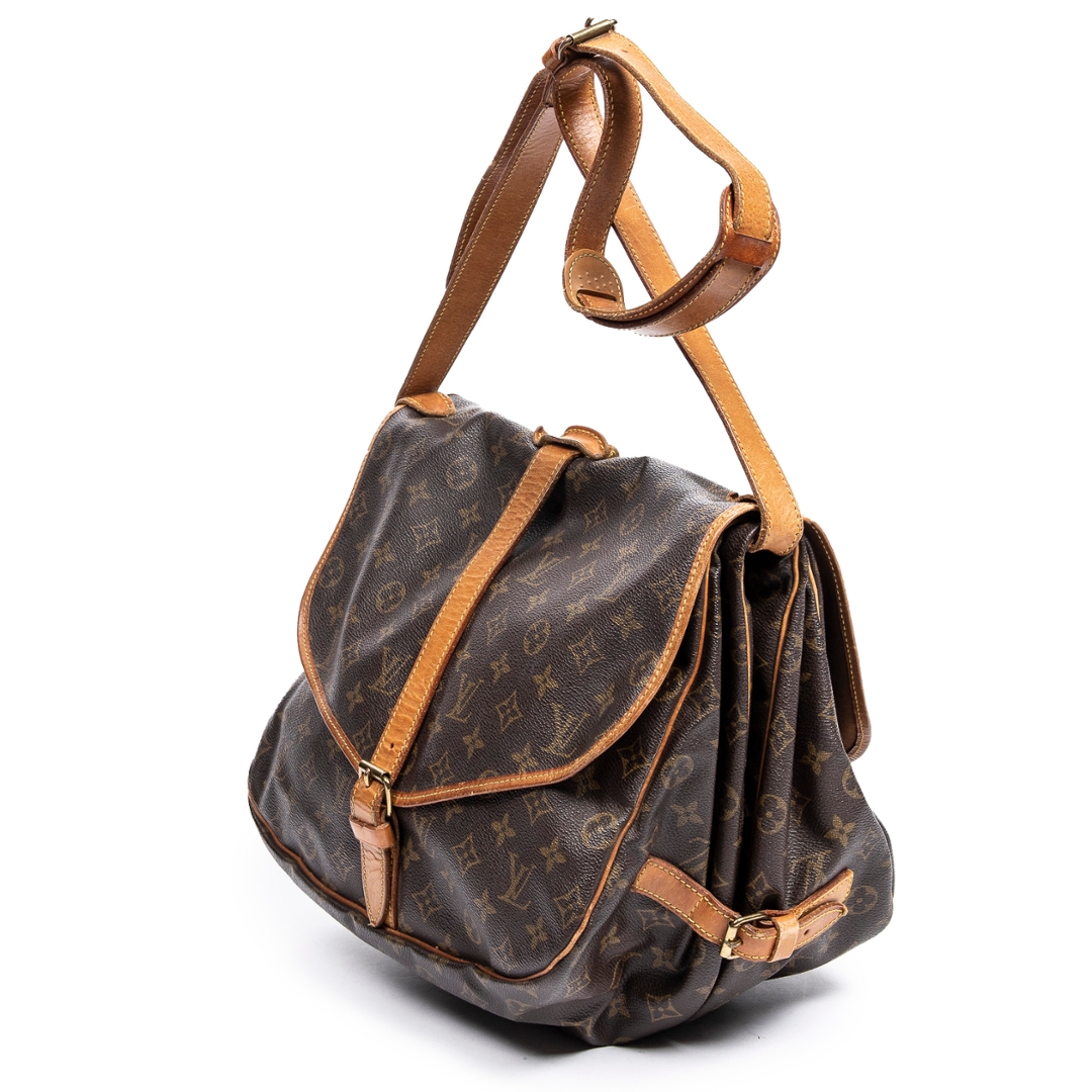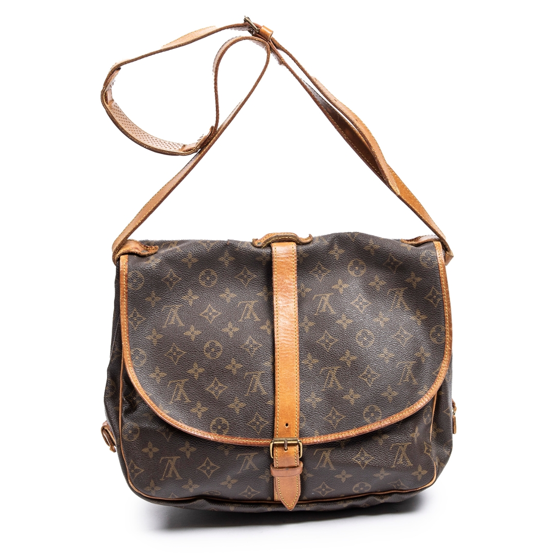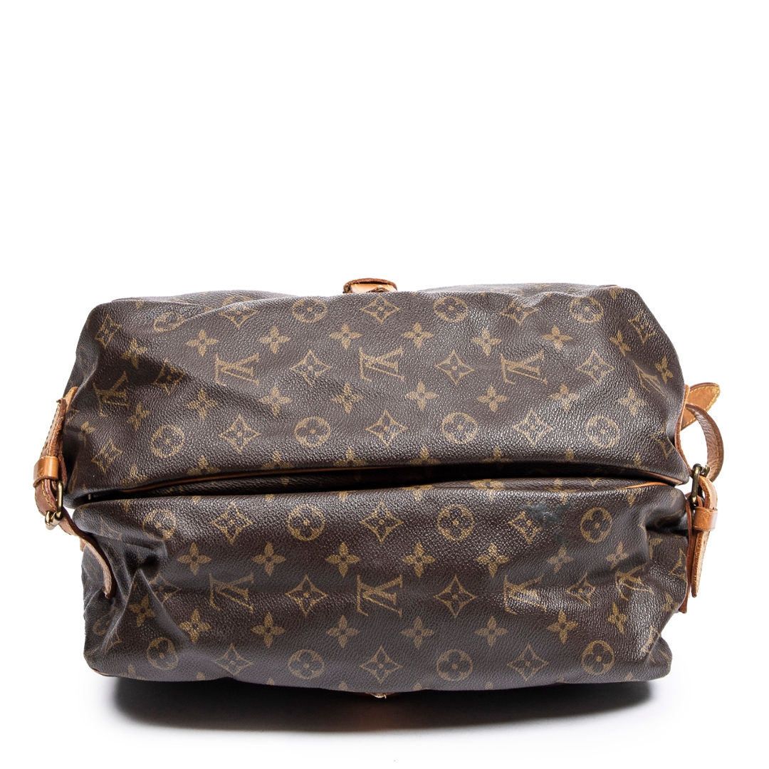 A vintage Louis Vuitton monogram coated canvas Saumur bag with a certificate of authenticity. Approximately 26cm height, 35cm width.