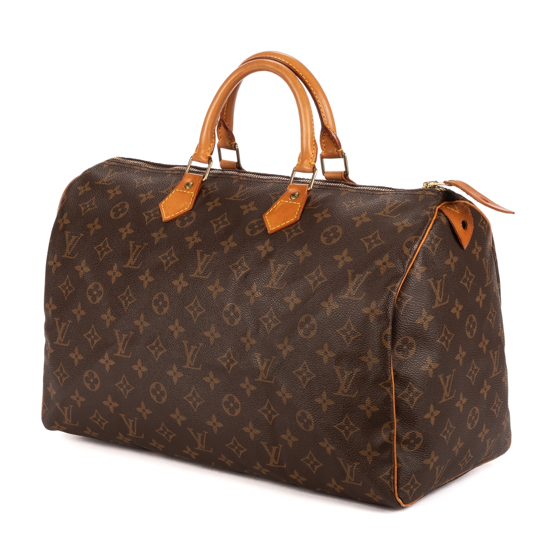 A vintage Louis Vuitton monogram coated canvas Speedy bag with a certificate of authenticity, Approximately 22cm height, 40cm width.