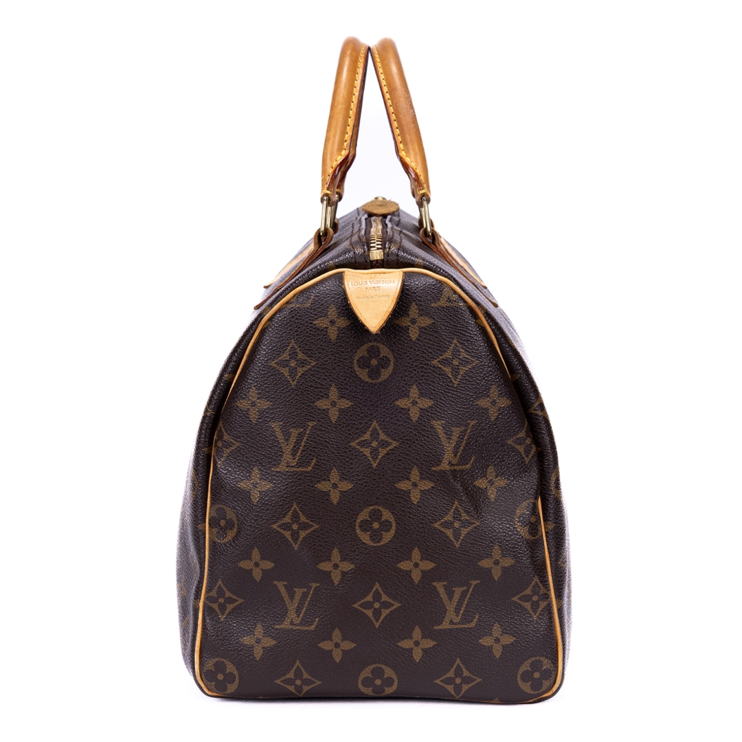 A vintage Louis Vuitton monogram coated canvas Speedy bag with a certificate of authenticity. Approximately 23cm height, 35cm width.