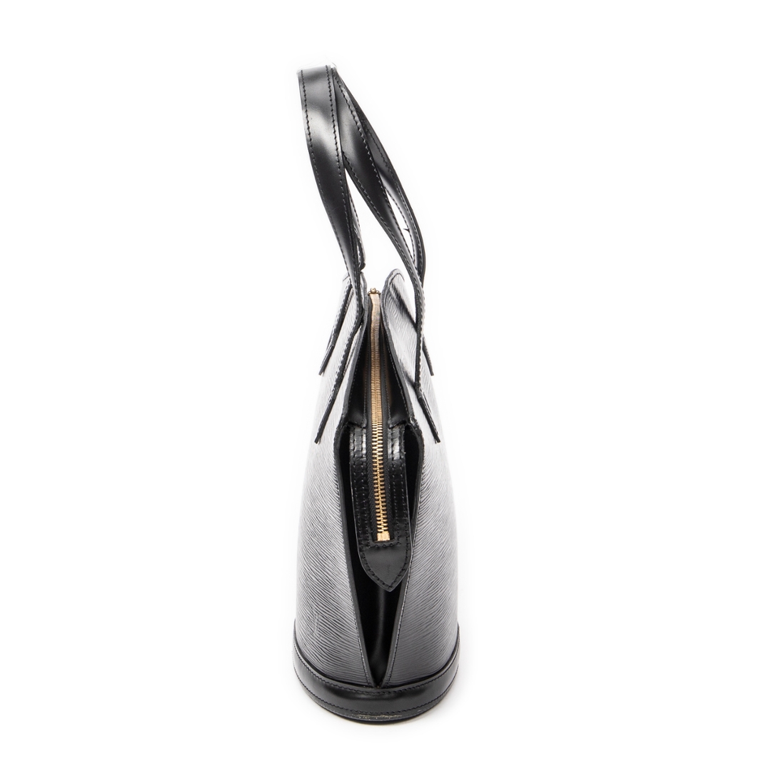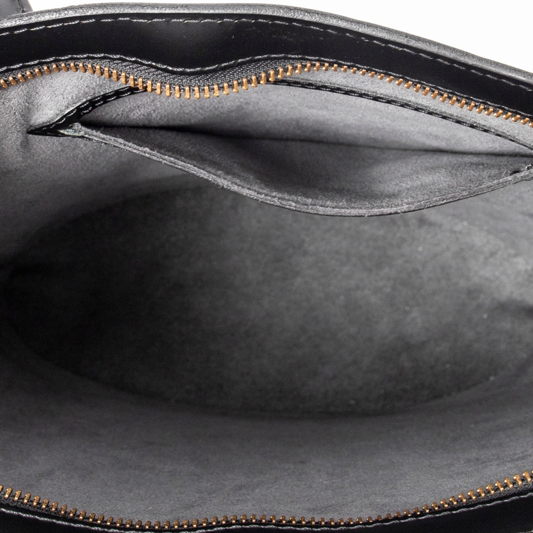 A vintage Louis Vuitton black calf leather St-Jacques bag with a certificate of authenticity, Approximately 24cm height, 23cm width.