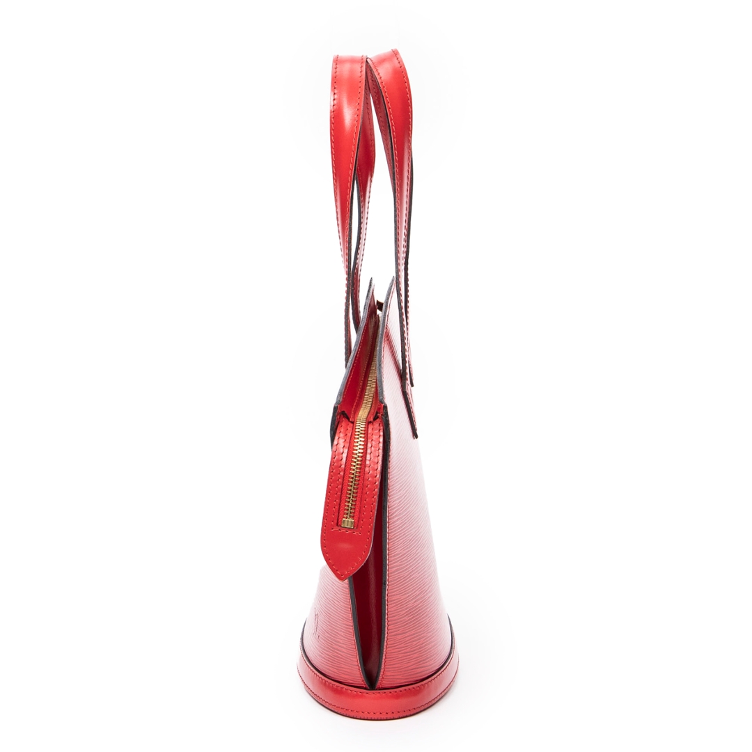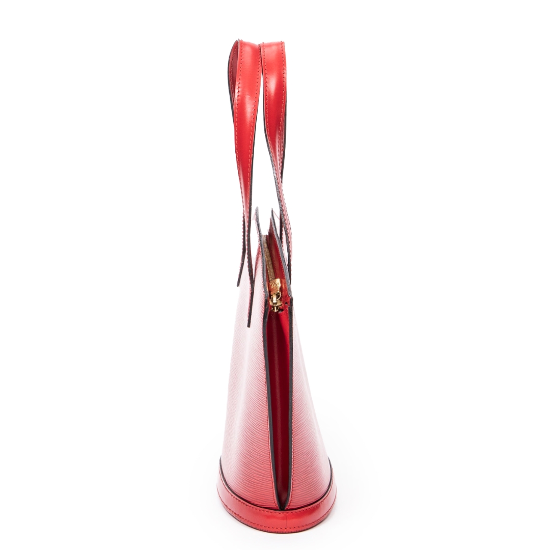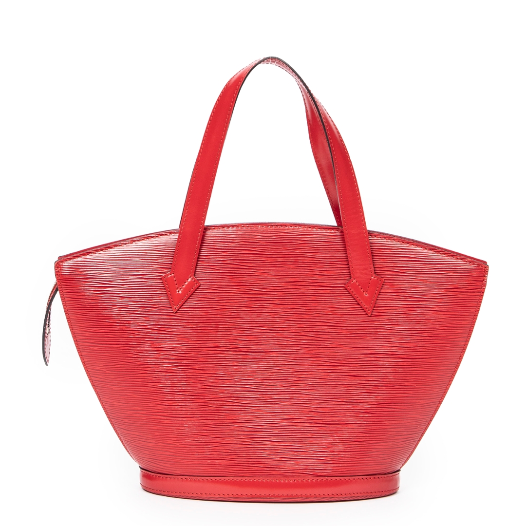 A vintage Louis Vuitton red calf leather St-Jacques bag with a certificate of authenticity, Approximately 24cm height, 23cm width.