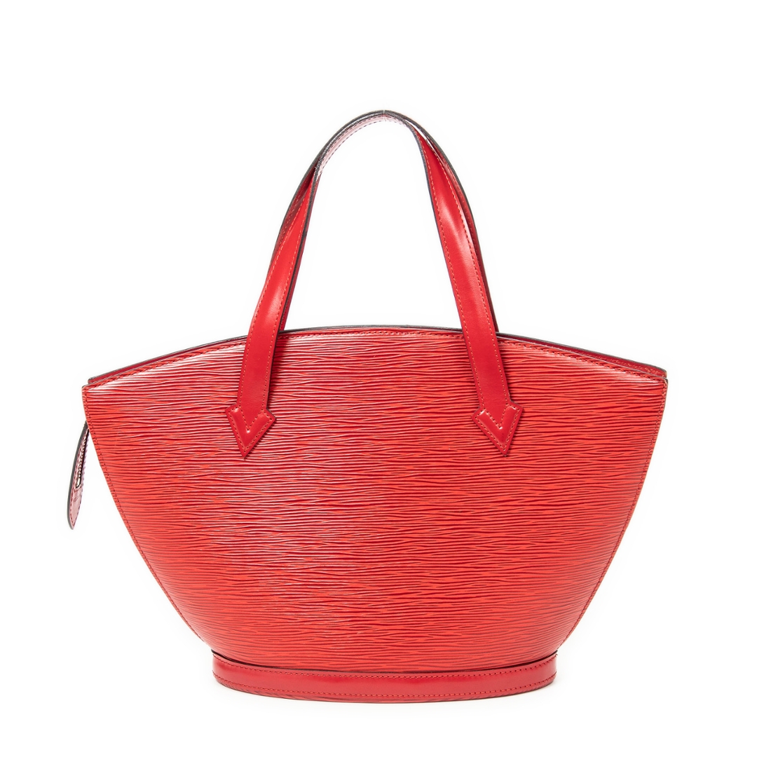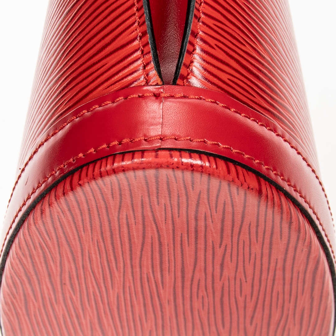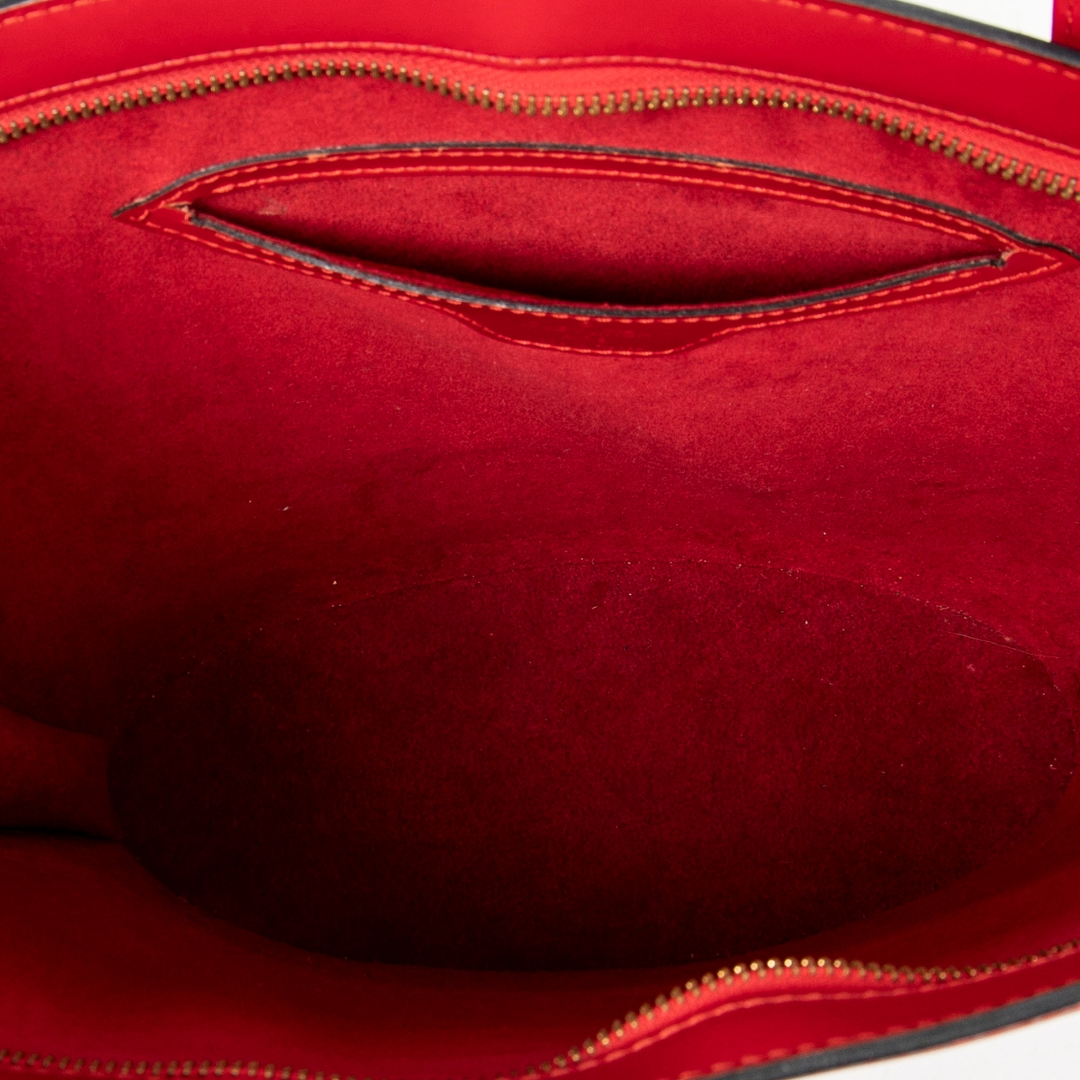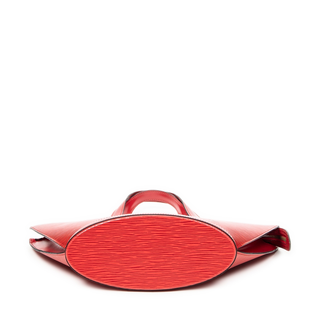 A vintage Louis Vuitton red calf leather St-Jacques bag with a certificate of authenticity. Approximately 24cm height, 23cm width.