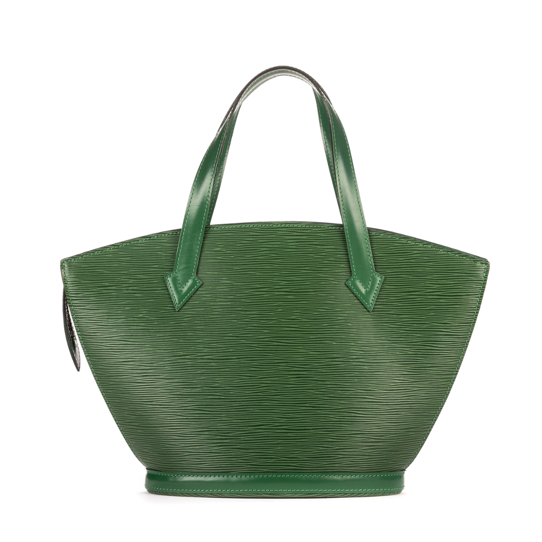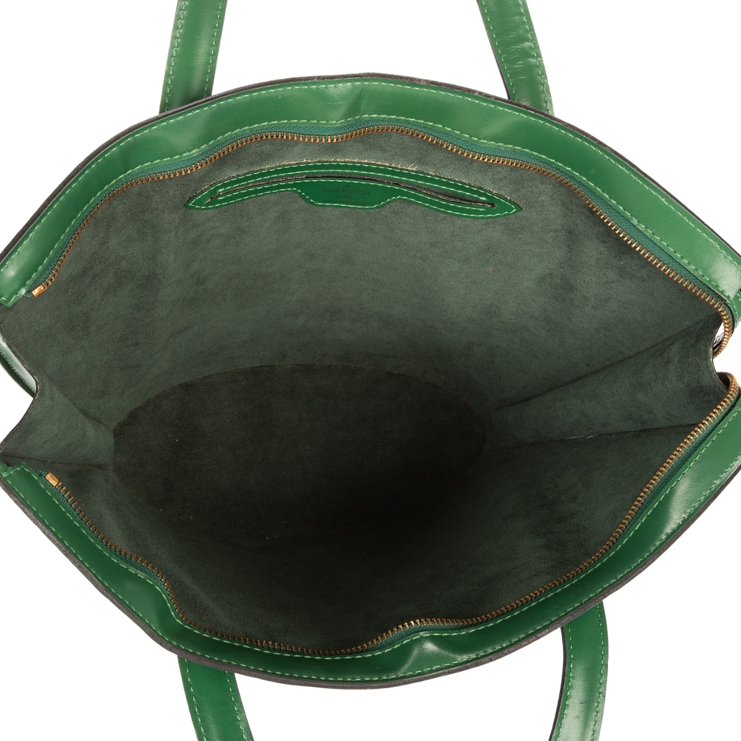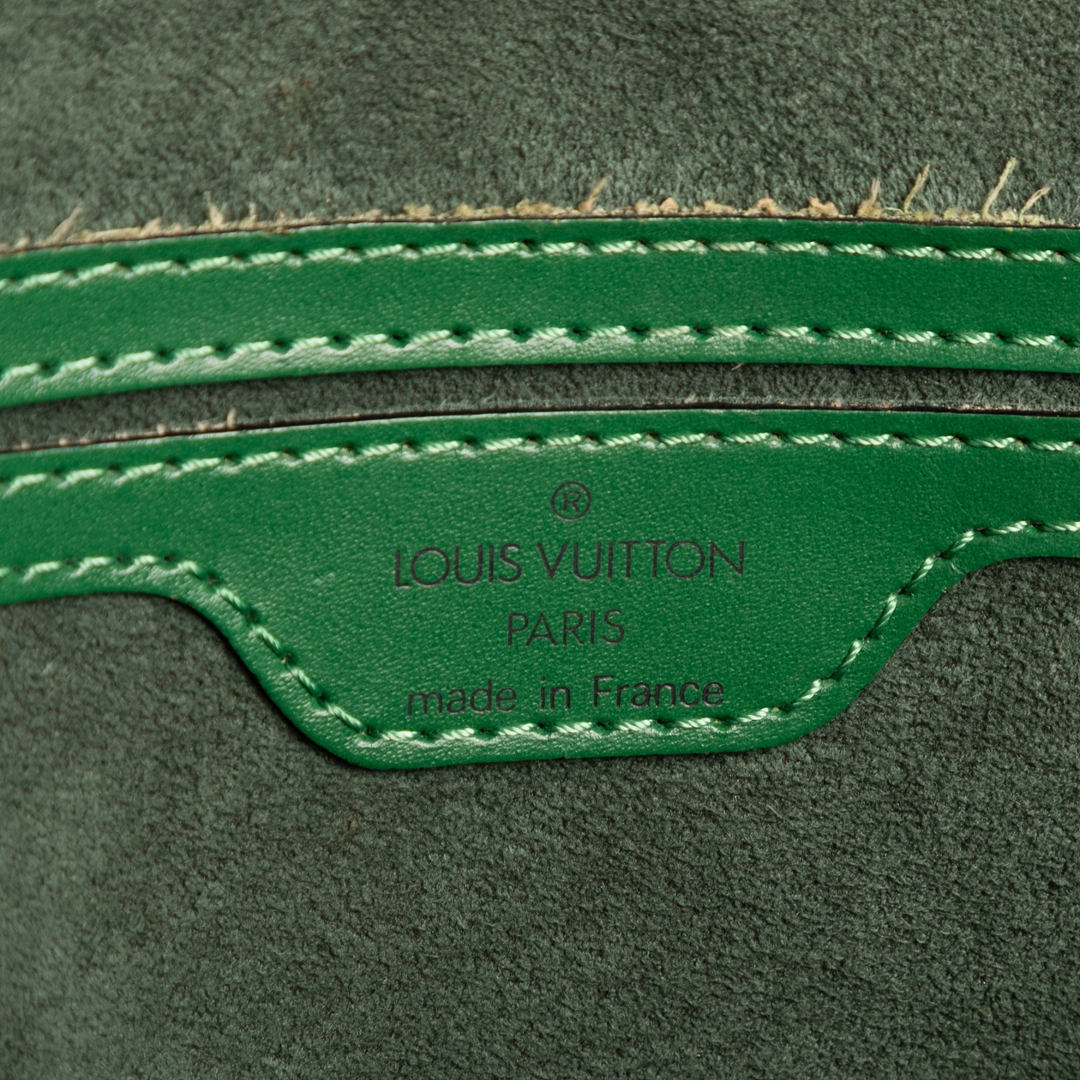 A vintage Louis Vuitton green calf leather St-Jacques bag with a certificate of authenticity. Approximately 24cm height, 23cm width.