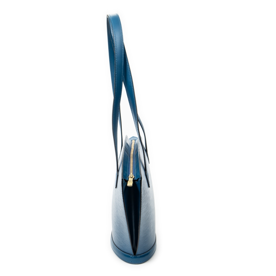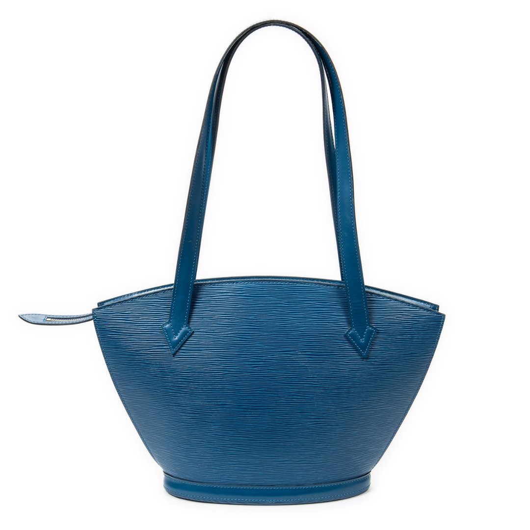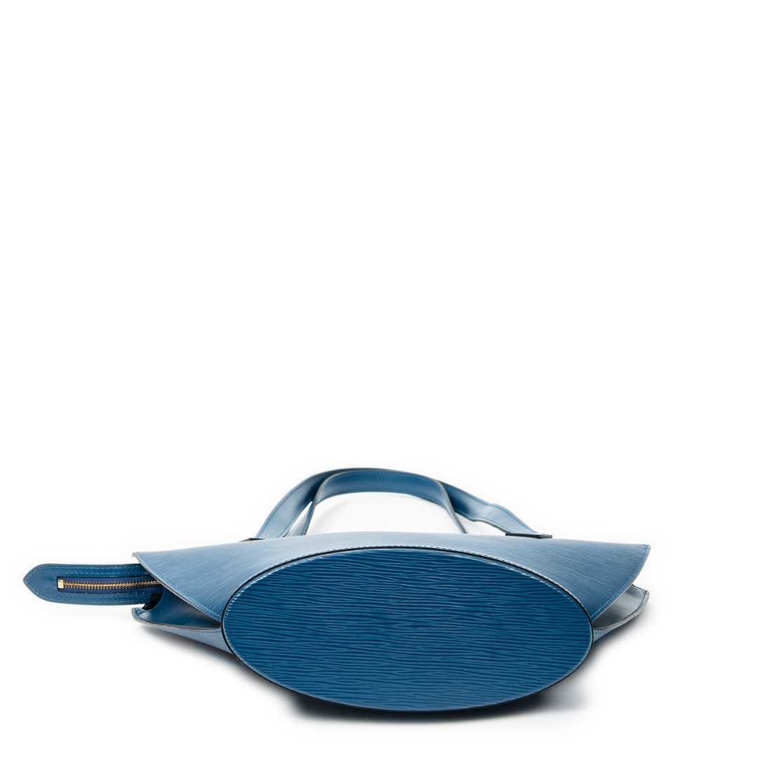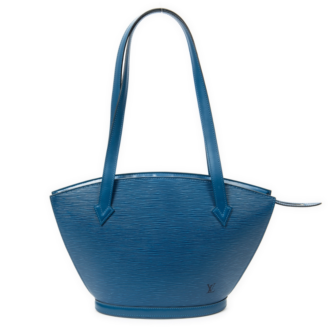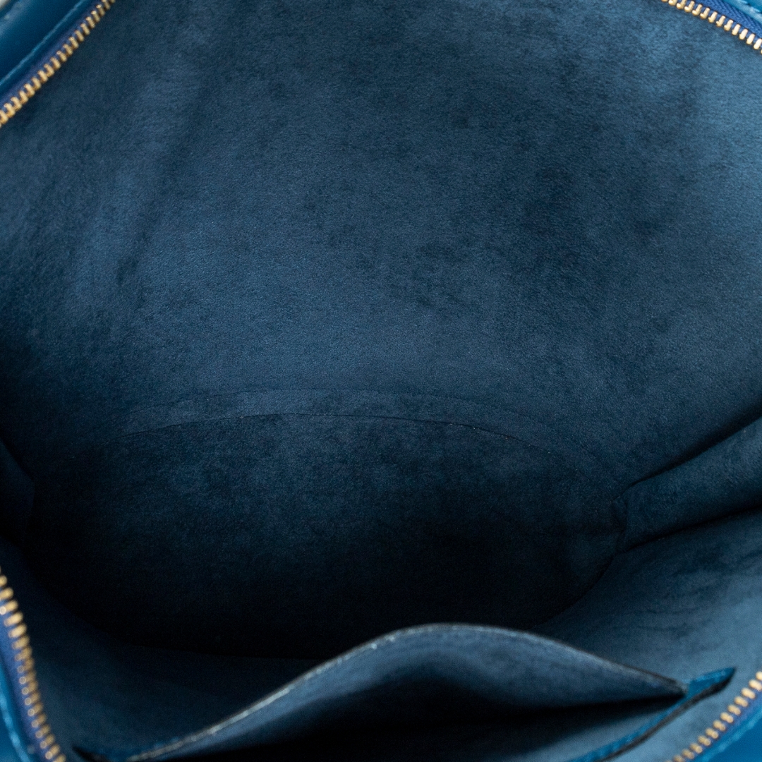 A vintage Louis Vuitton blue calf leather St-Jacques Long Straps bag with a certificate of authenticity, Approximately 24cm height, 23cm width.