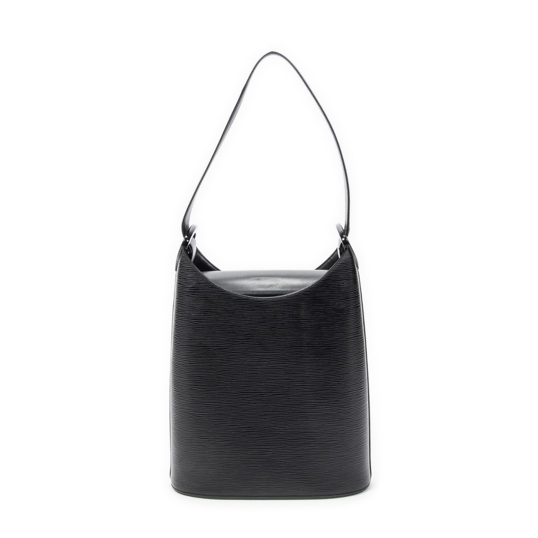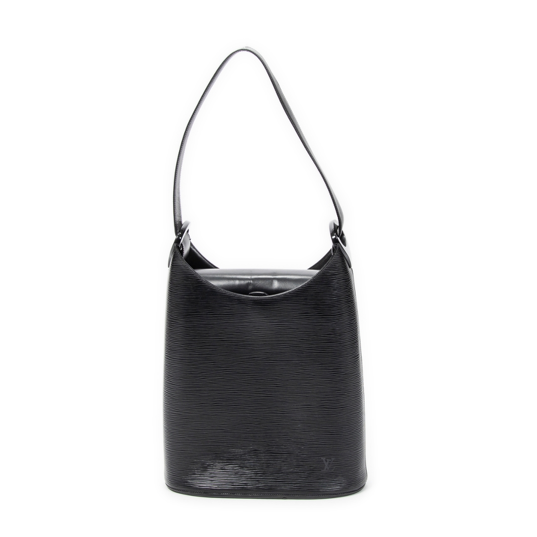 A vintage Louis Vuitton black calf leather Verseau bag with a certificate of authenticity. Approximately 32cm height, 26cm width.
