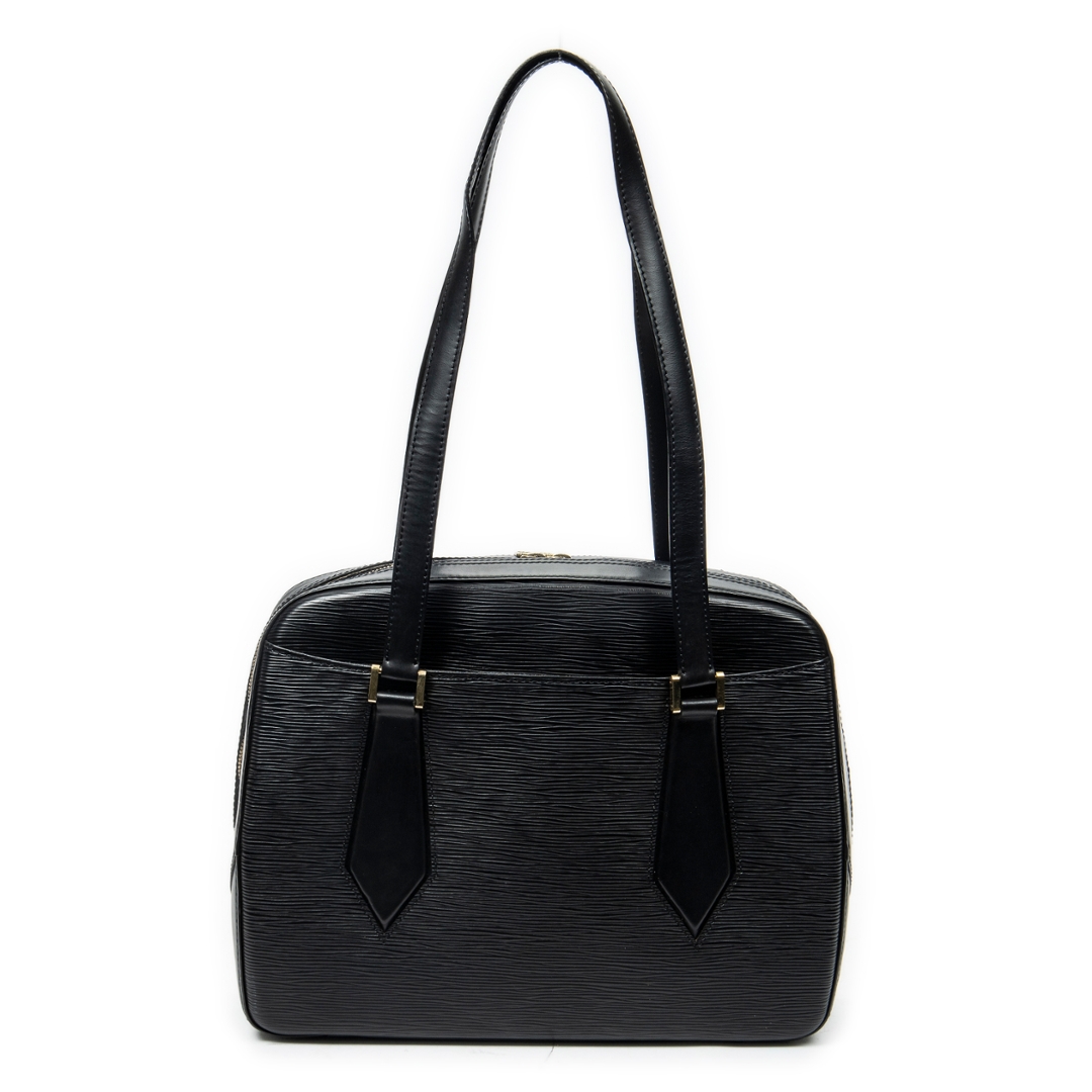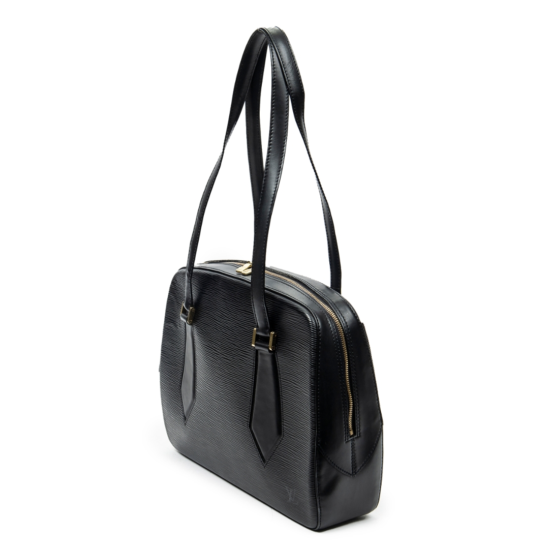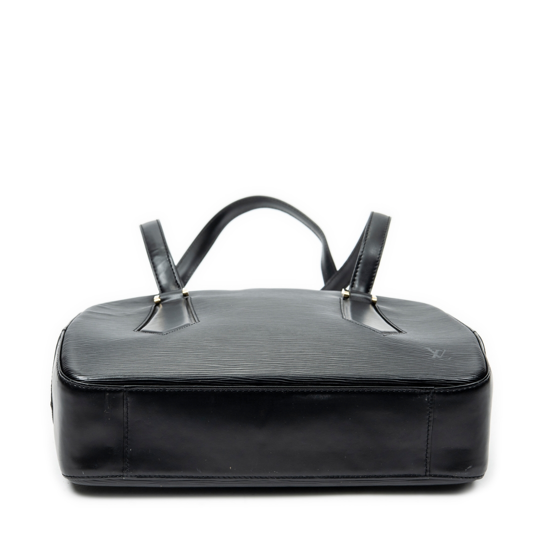 A vintage Louis Vuitton black calf leather Voltaire bag with a certificate of authenticity. Approximately 25cm height, 33cm width.