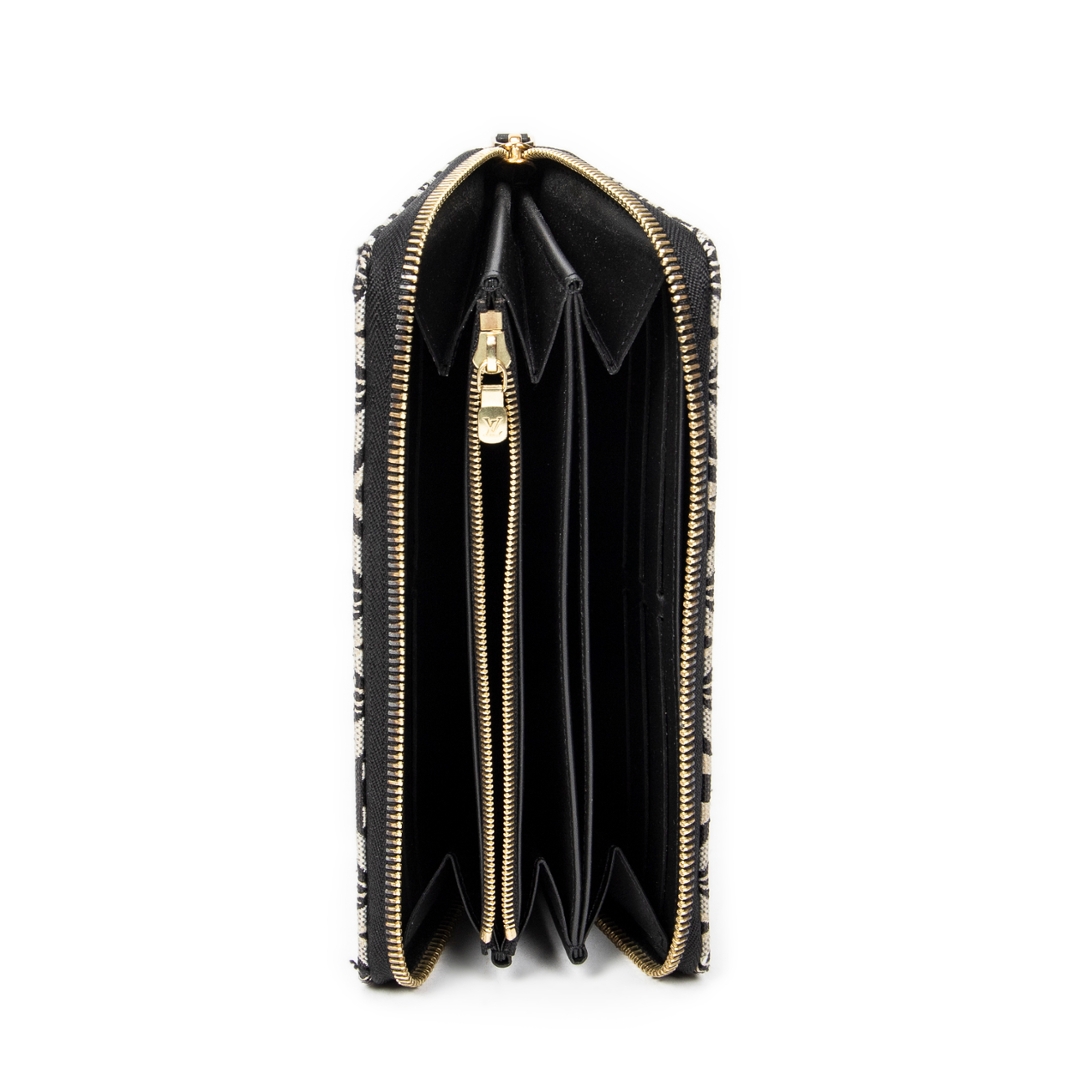 A vintage Louis Vuitton black canvas Zippy Wallet with a certificate of authenticity. Approximately 10cm height, 20cm width.