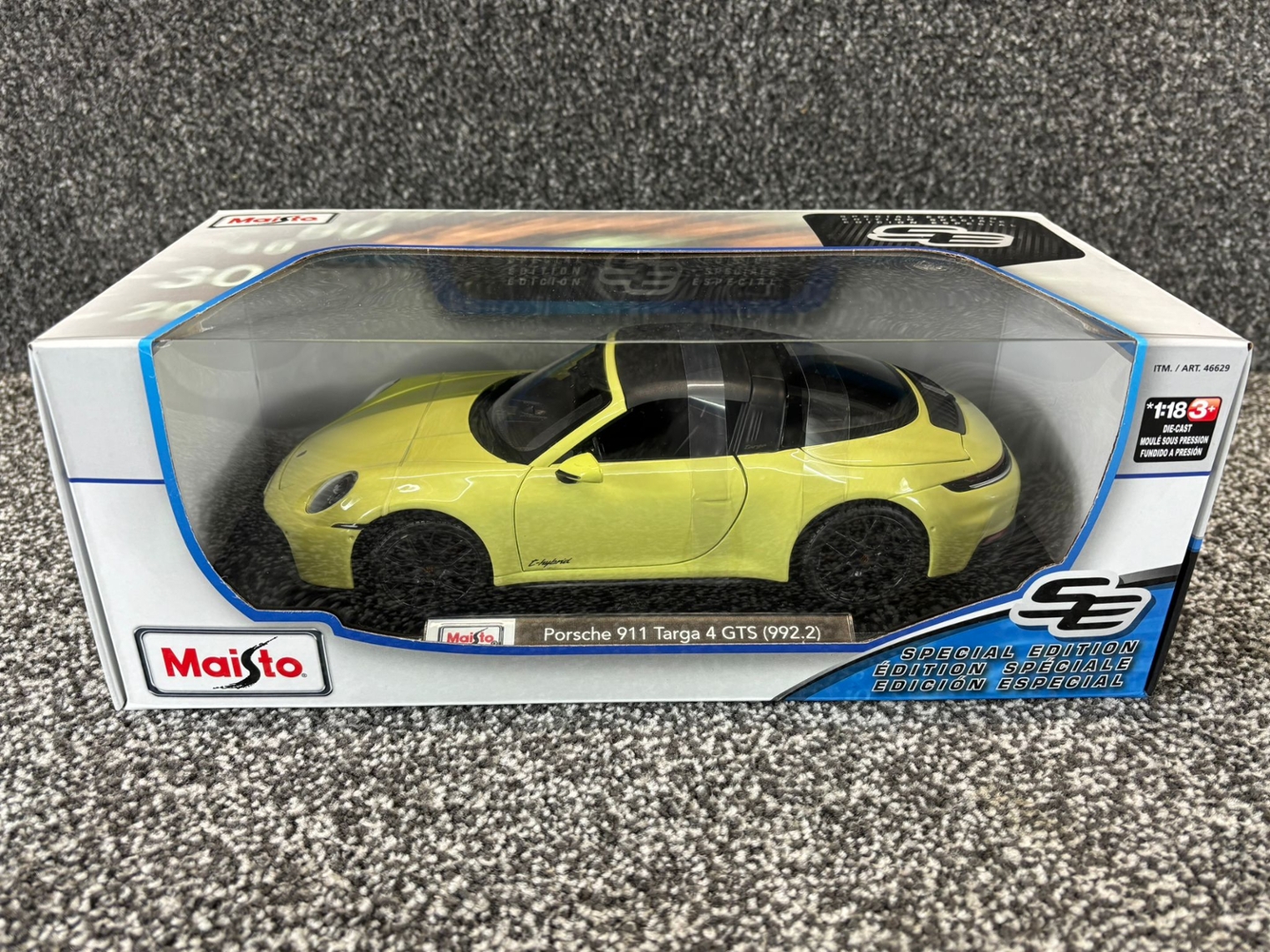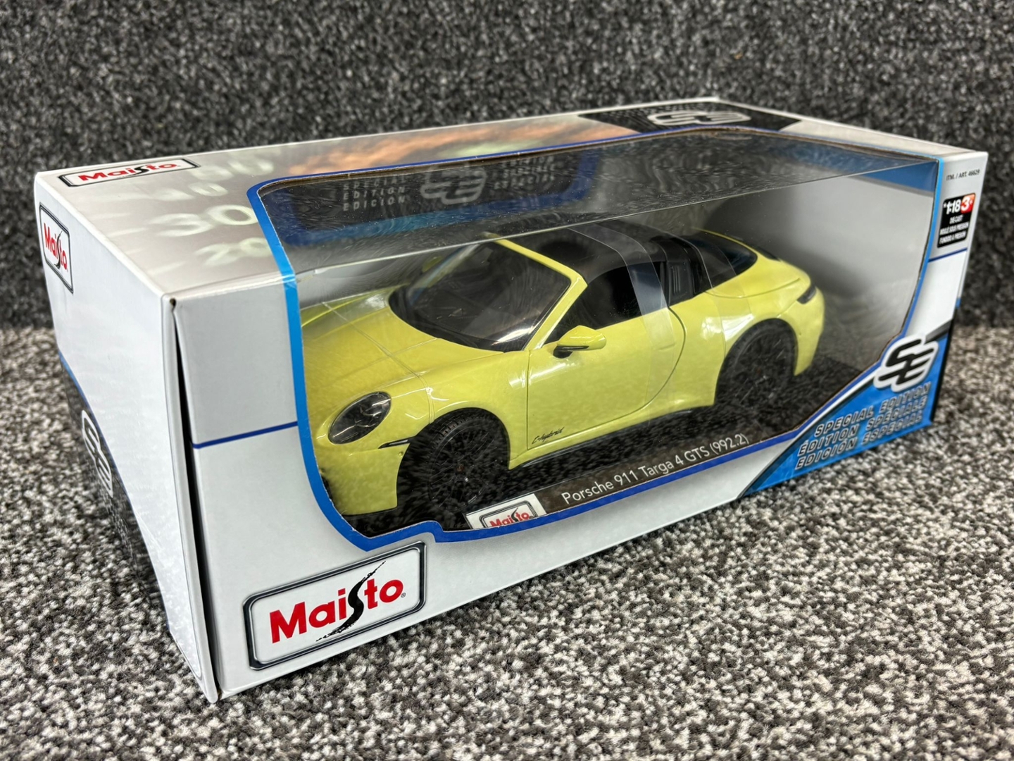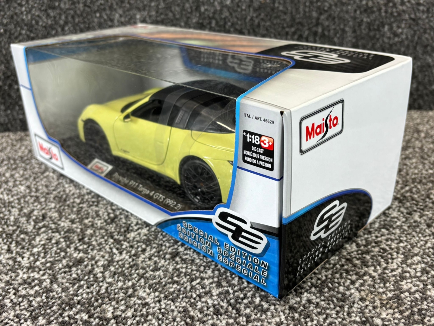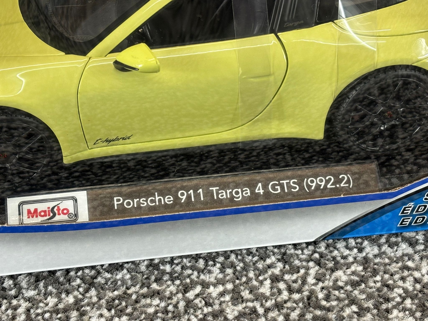 A 1:18 scale Maisto Porsche 911 Targa 4 GTS die-cast model car.