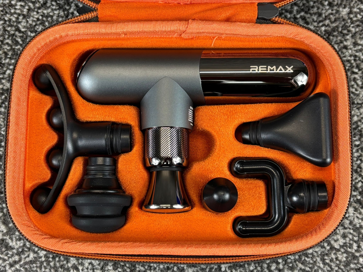 A brand new Massage Gun with Full Metal Body, 10KG Power & 6 Interchangeable Heads.