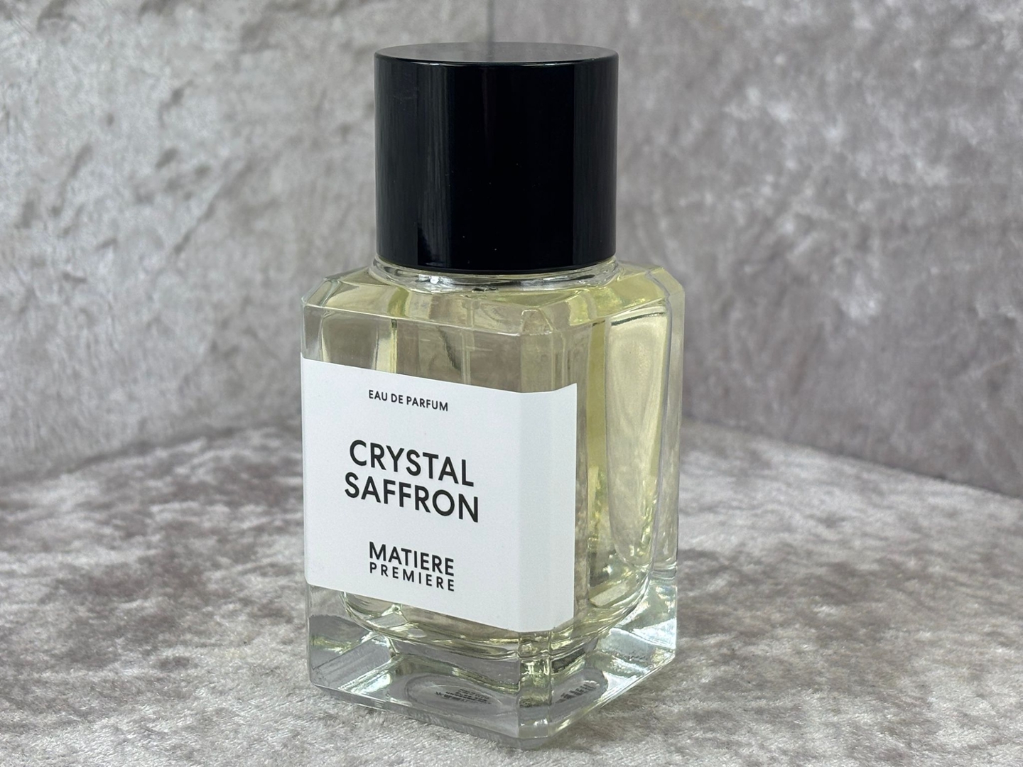 A 100ml bottle of Crystal Saffron Eau De Parfum by Matiere Premiere. This refined composition highlights the luminous clarity of saffron, crafted to showcase the ingredient in its purest and most modern form. Elegant and distinctive, it delivers a radiant yet warm presence from the very first spray.
