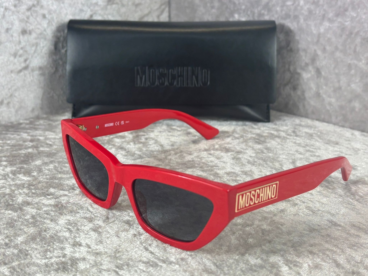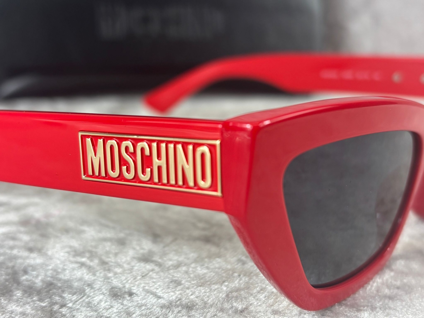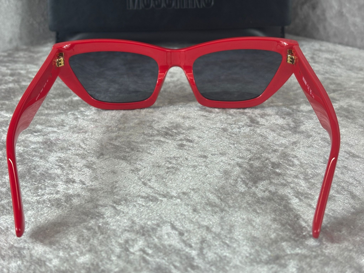A Brand new, unused pair of Moschino Cat Eye - Red Sunglasses.