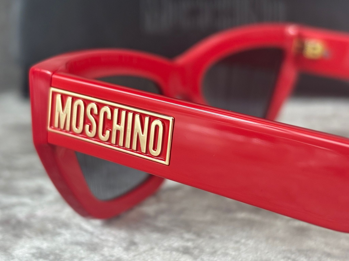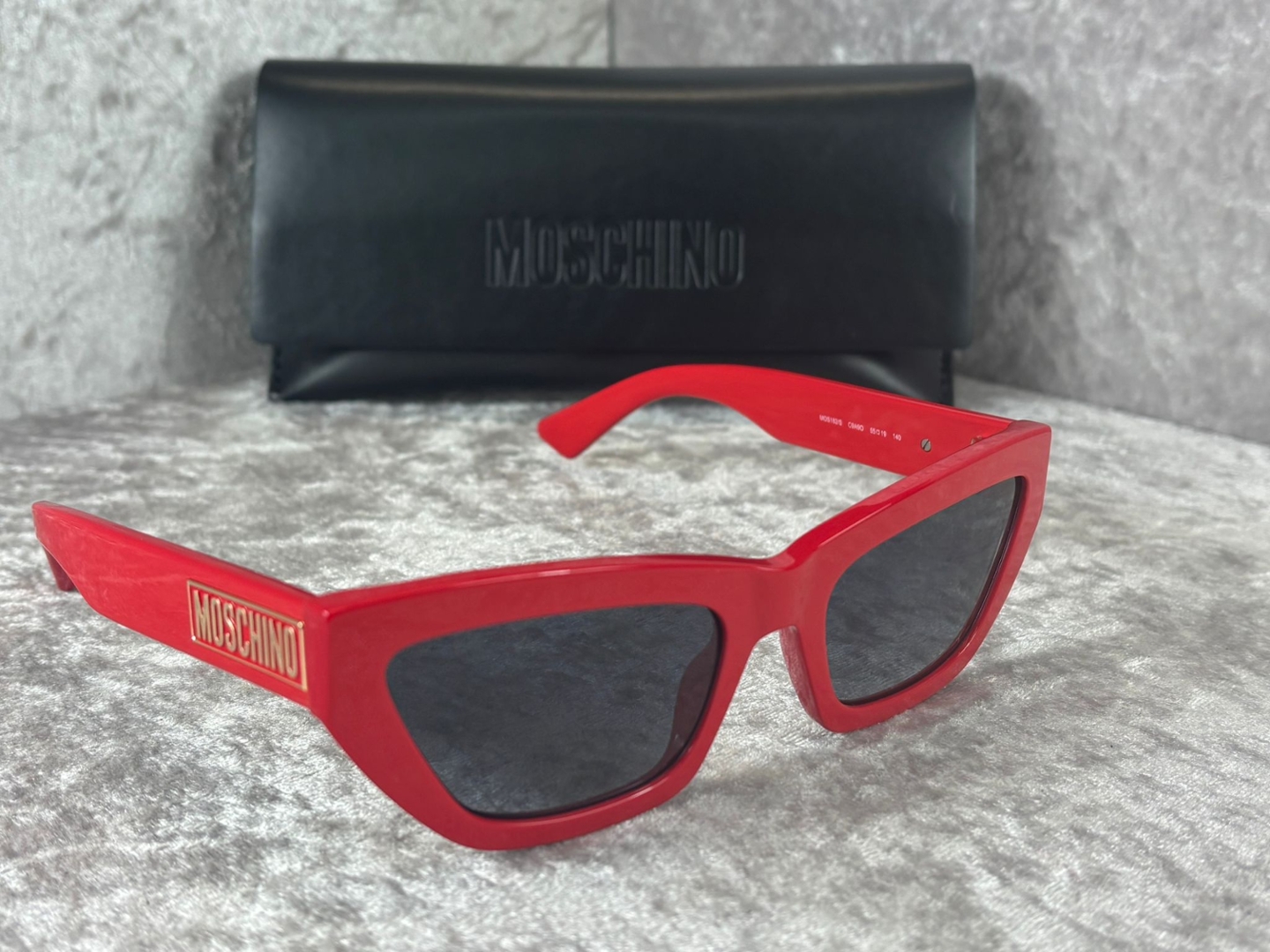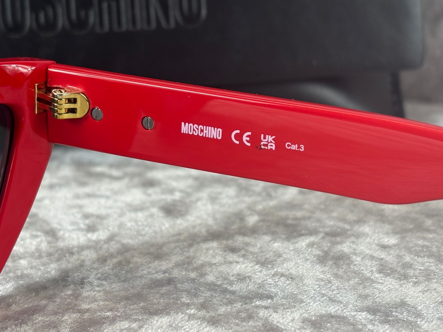 A Brand new, unused pair of Moschino Cat Eye - Red Sunglasses.