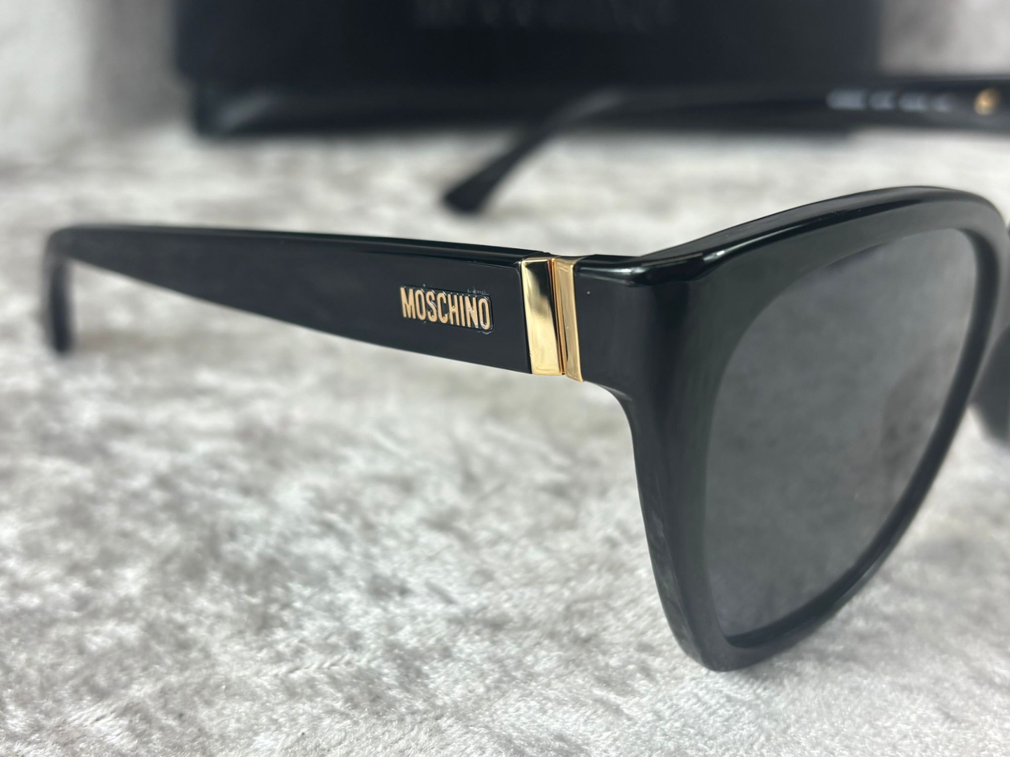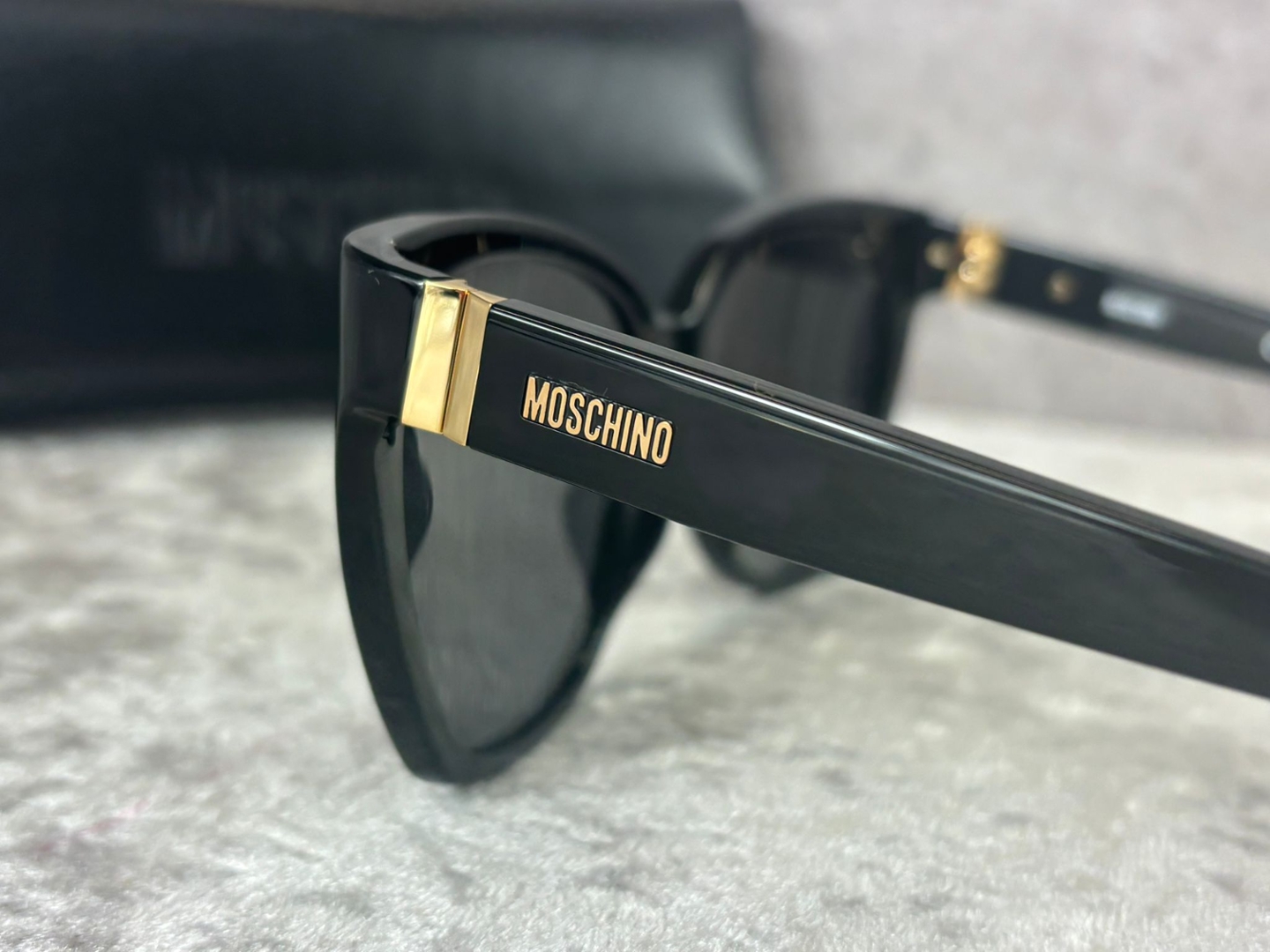 Subtle gold-tone accents at the hinges add a touch of understated luxury, while Moschino branding along the temples reinforces the designer identity without overwhelming the clean profile. The smooth acetate construction ensures both durability and comfort, making these sunglasses as practical as they are stylish.