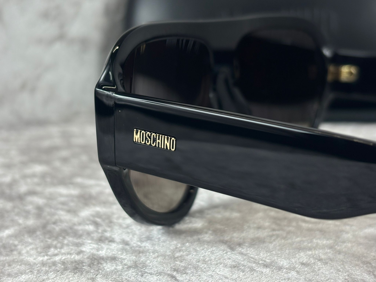 The smooth acetate front contrasts subtly with the textured temples, adding depth and character to the design. Discreet Moschino branding at the sides reinforces the designer identity without detracting from the clean, powerful lines. The flat-top construction offers a distinctive look that stands apart from traditional square frames, giving these sunglasses a fashion-forward edge.