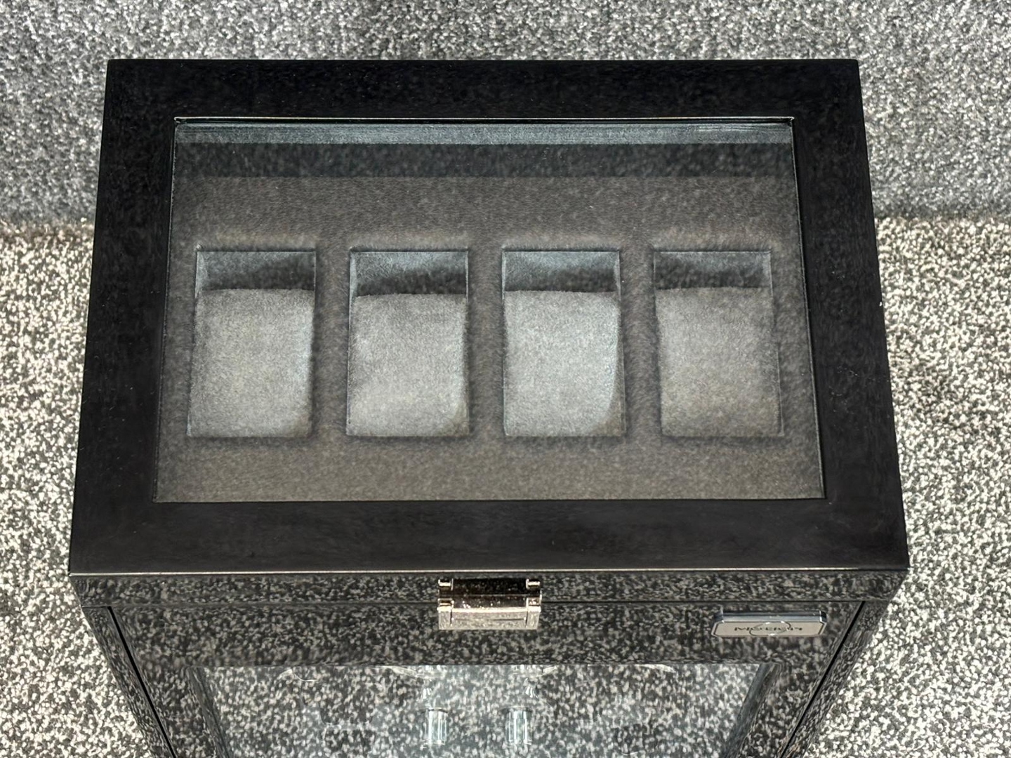 Designed to keep your watches in optimal condition, this winder combines style and practicality effortlessly. Elevate your watch collection and ensure your timepieces are always ready to impress with the Motion Quad Black Wooden Piano Finish Watch Winder.