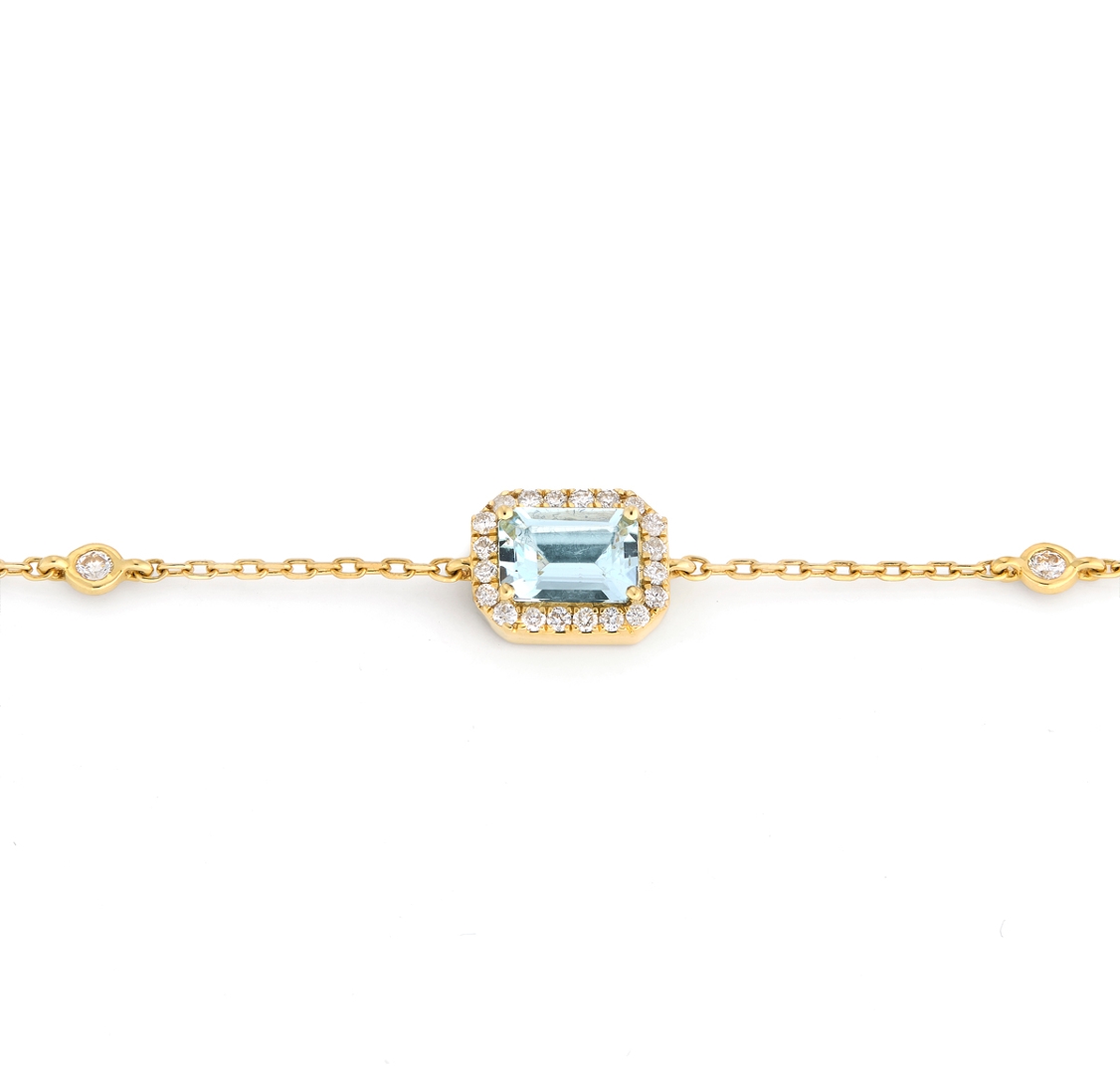 - > Natural Aquamarine 0.76ct & Diamond 0.34ct Chain Bracelet