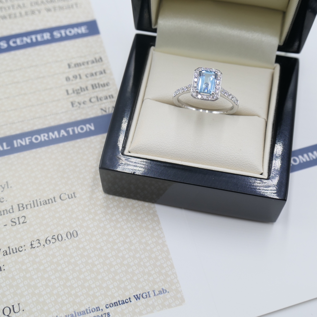 Whether cherished as a tangible asset or integrated into an investment portfolio, this ring allows investors to capitalise on the enduring allure and value of natural diamonds and aquamarines. Embrace the potential for growth and appreciation with this extraordinary investment-grade piece, destined to captivate hearts and portfolios alike.