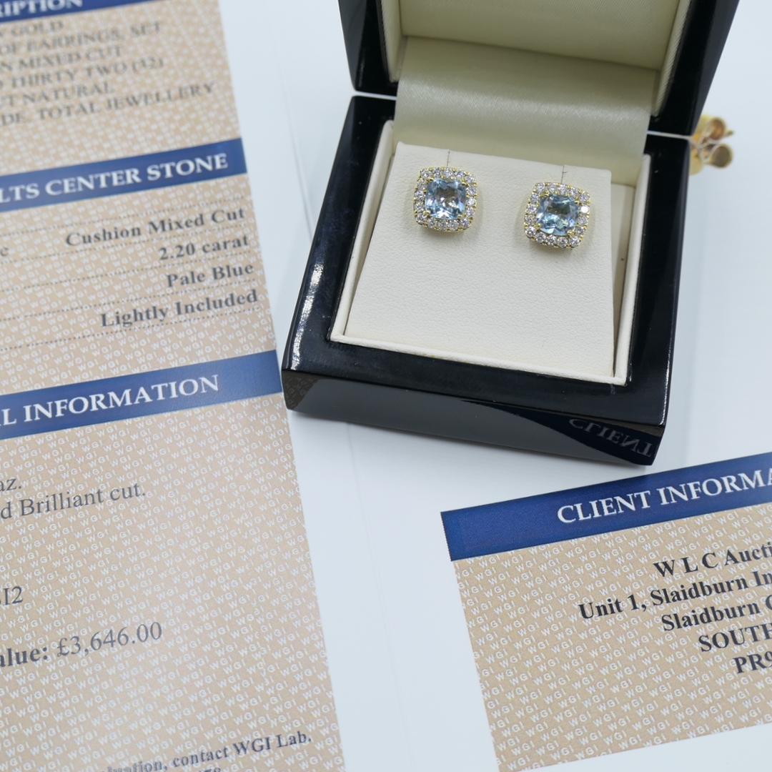 Natural diamonds continue to be treasured for their enduring rarity and prestige, representing not only everlasting beauty but also a solid investment in genuine, earth-formed brilliance. Their timeless desirability and intrinsic value ensure that fine jewellery pieces such as these hold their worth while offering the wearer unmatched elegance and refinement. With a total weight of 4.00 grams and an insurance valuation of £3,646.00, this certified pair of earrings captures both grace and sophistication—a truly exquisite combination of calming aquamarine tones, dazzling natural diamonds, and enduring craftsmanship designed to be cherished for generations.