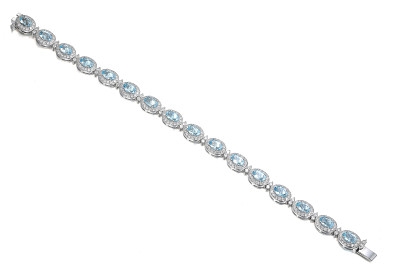 - > Natural Aquamarine 6.43ct & Diamond 3.33ct Oval Shaped Cluster Bracelet