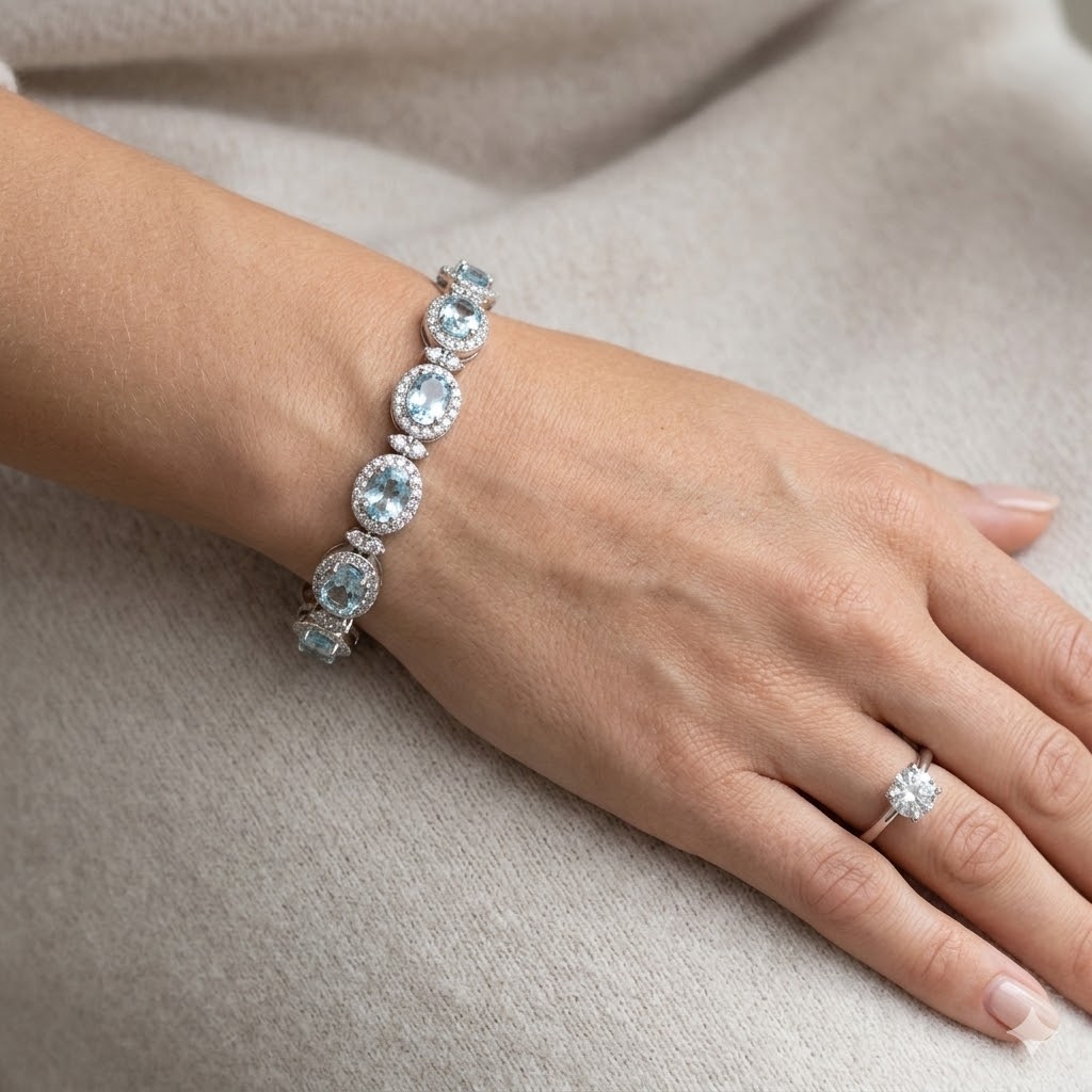 Natural aquamarines and diamonds are valued for their geological origin and enduring demand in fine jewellery. Well-balanced gemstone bracelets remain highly desirable, combining aesthetic appeal with long-term appreciation potential. This piece offers visual refinement, confidence in quality, and lasting value, making it a compelling acquisition for collectors and discerning buyers alike.