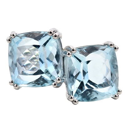 - > Natural Aquamarine 9.21ct & Diamond 0.46ct Cushion Shaped Double Cluster Ring