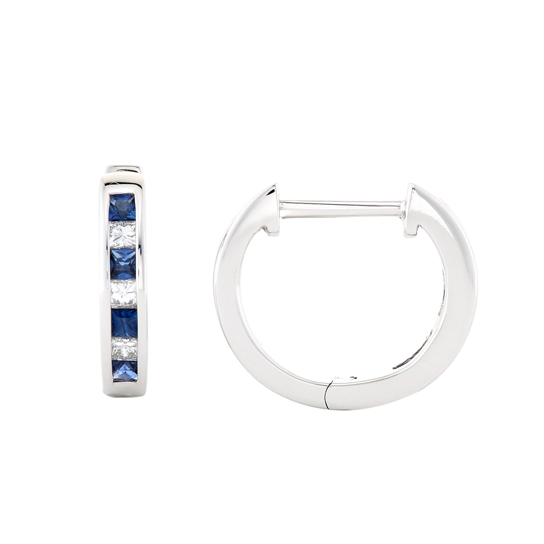 Expertly crafted in polished 18ct white gold, the sleek hoop design hugs the ear comfortably and securely while allowing the gemstones to take centre stage. The calm tone of the white gold enhances the icy brilliance of the diamonds, providing a beautiful contrast to the deep blue sapphires and resulting in a sophisticated yet modern aesthetic.