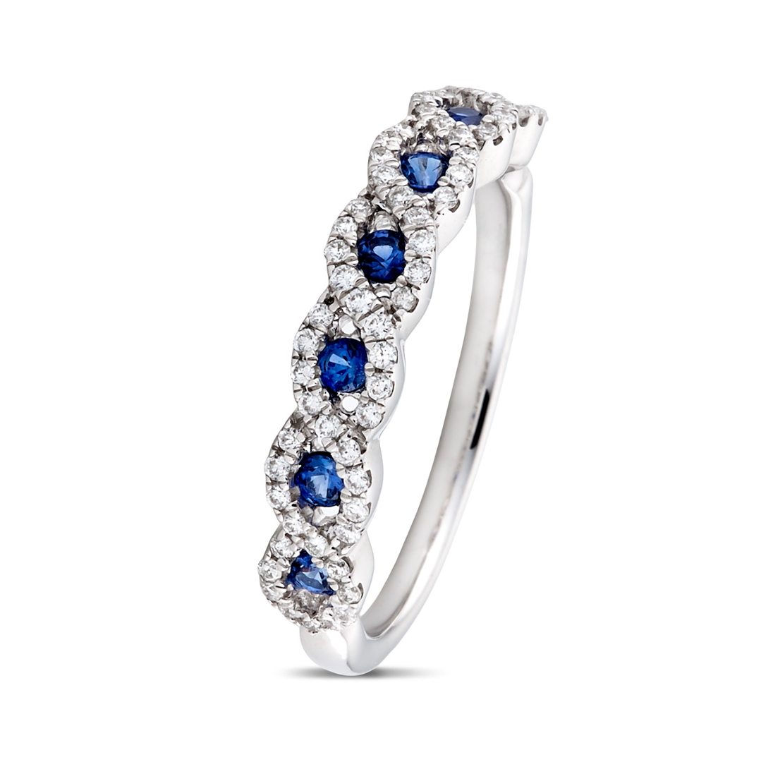 This exquisite ring unites the rich vibrancy of sapphire with the timeless sparkle of diamonds — a graceful expression of luxury, sophistication and enduring elegance.