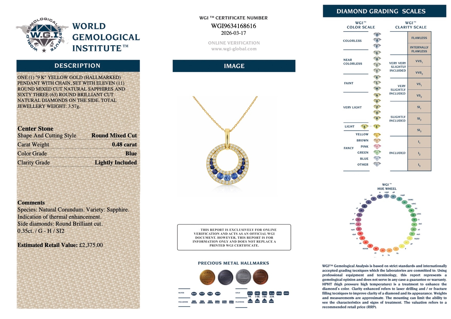 Natural diamonds continue to be highly valued for their rarity and sustained global demand, supporting their long-term appreciation and reinforcing their position as a tangible investment asset. With a retail valuation of £2,375, this pendant offers a compelling opportunity to acquire a striking, well-composed piece that combines rich gemstone colour with the lasting investment potential of natural diamonds.