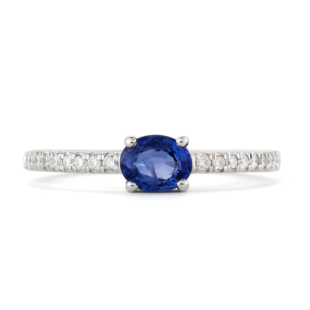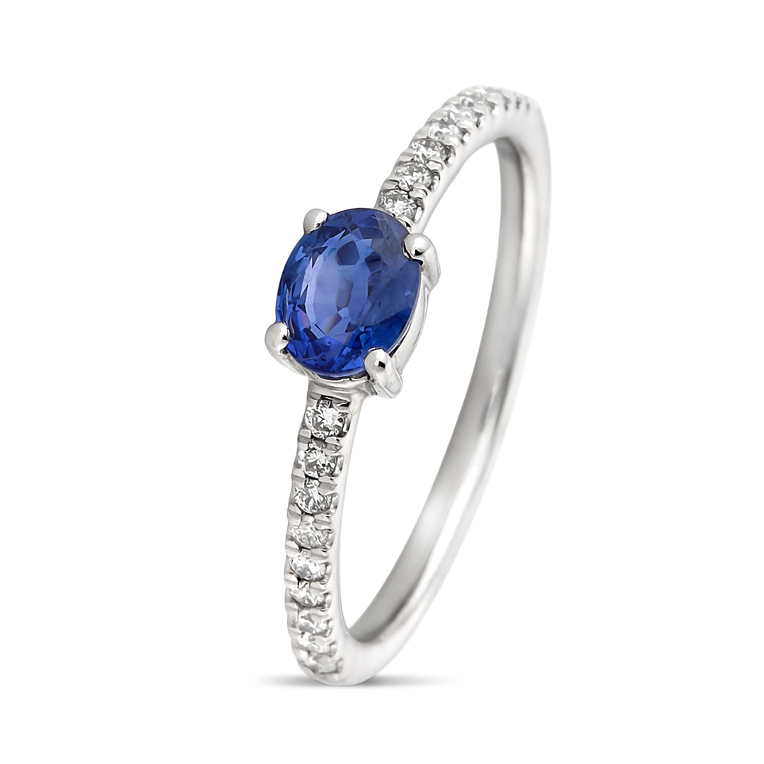 - > Natural Blue Sapphire 0.60ct & Diamond 0.16ct Oval Shaped Cluster Ring