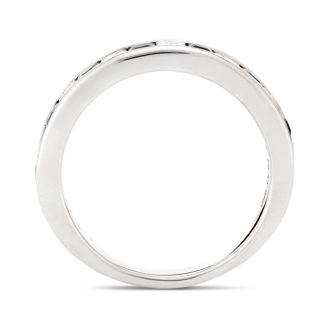 A brand-new, unused certified platinum eternity ring, gracefully set with seven vibrant square mixed-cut natural blue sapphires totalling 0.65ct, beautifully complemented by six princess-cut natural diamonds weighing 0.50ct. These diamonds feature exceptional VS1-VS2 clarity and a desirable colour range of G-H, perfectly accentuating the deep blue tones of the sapphires. Meticulously crafted in platinum, this elegant piece captures the unique charm, brilliance, and enduring appeal exclusive to authentic natural gemstones.