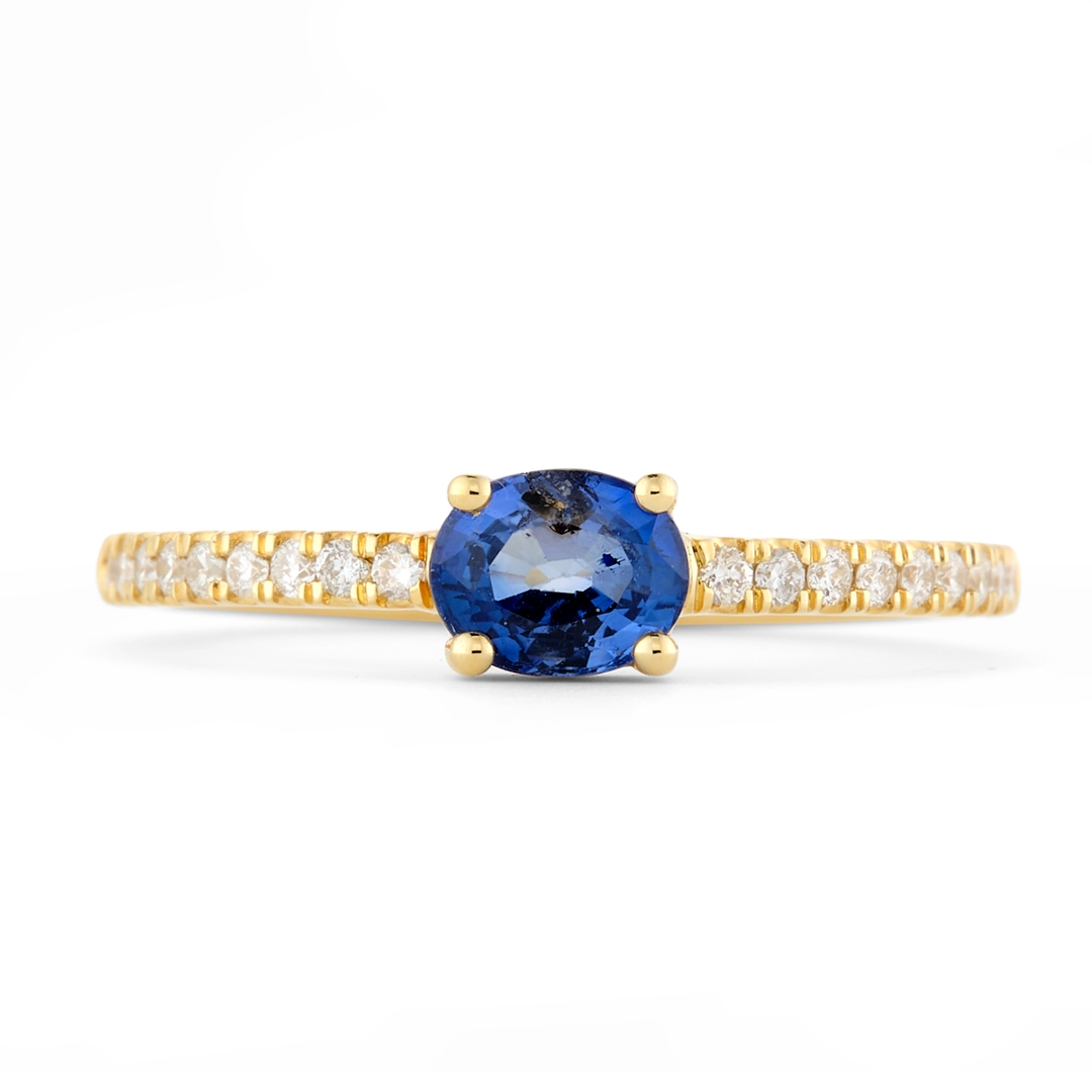 - > Natural Blue Sapphire 0.70ct & Diamond 0.16ct Oval Shaped Cluster Ring