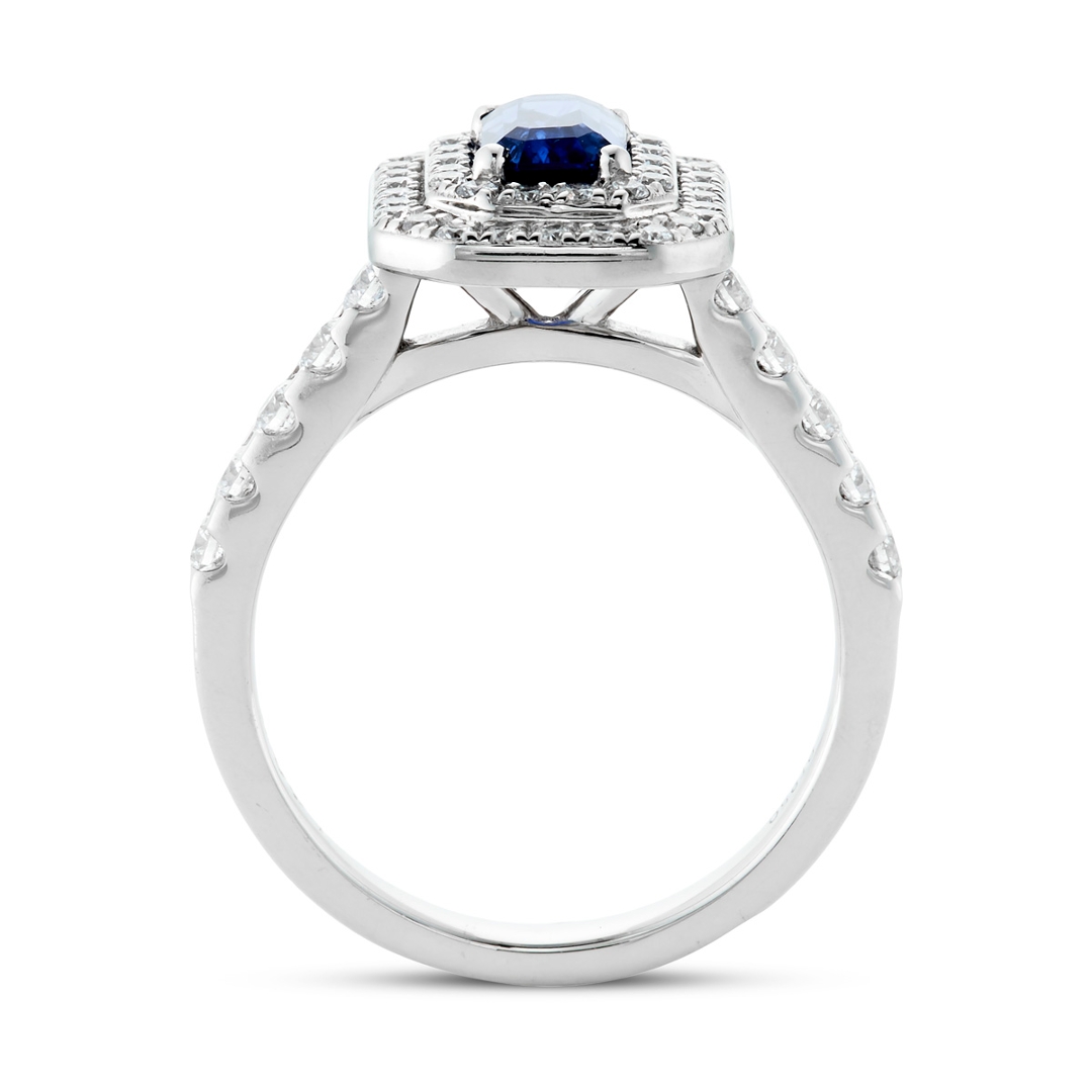 - > Natural Blue Sapphire 1.00ct & Diamond 0.67ct Emerald Shaped Cluster Ring