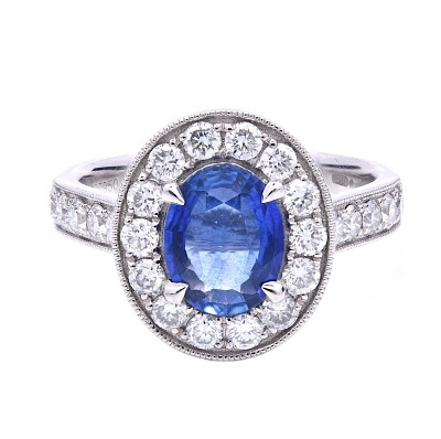 - > Natural Blue Sapphire 1.24ct & Diamond 0.73ct Oval Shaped Cluster Ring