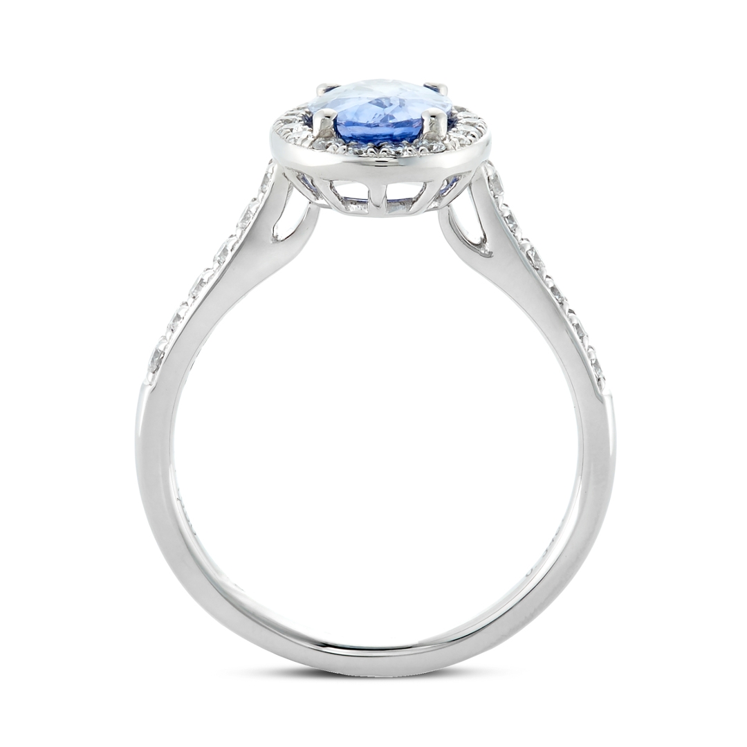- > Natural Blue Sapphire 1.29ct & Diamond 0.34ct Oval Shaped Cluster Ring