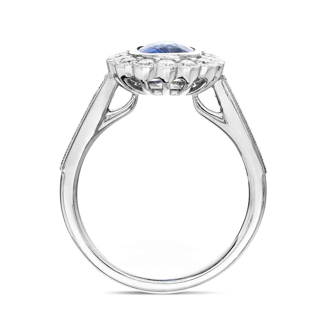 - > Natural Blue Sapphire 1.38ct & Diamond 0.69ct Flower Shaped Cluster Ring