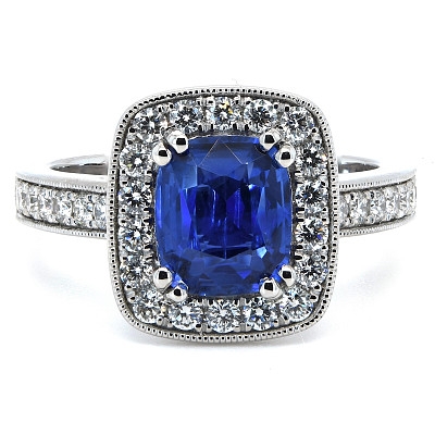 - > Natural Blue Sapphire 1.51ct & Diamond 0.38ct Cushion Shaped Cluster Ring