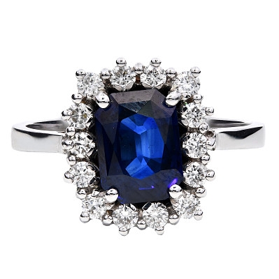 - > Natural Blue Sapphire 2.05ct & Diamond 0.35ct Cluster Ring
