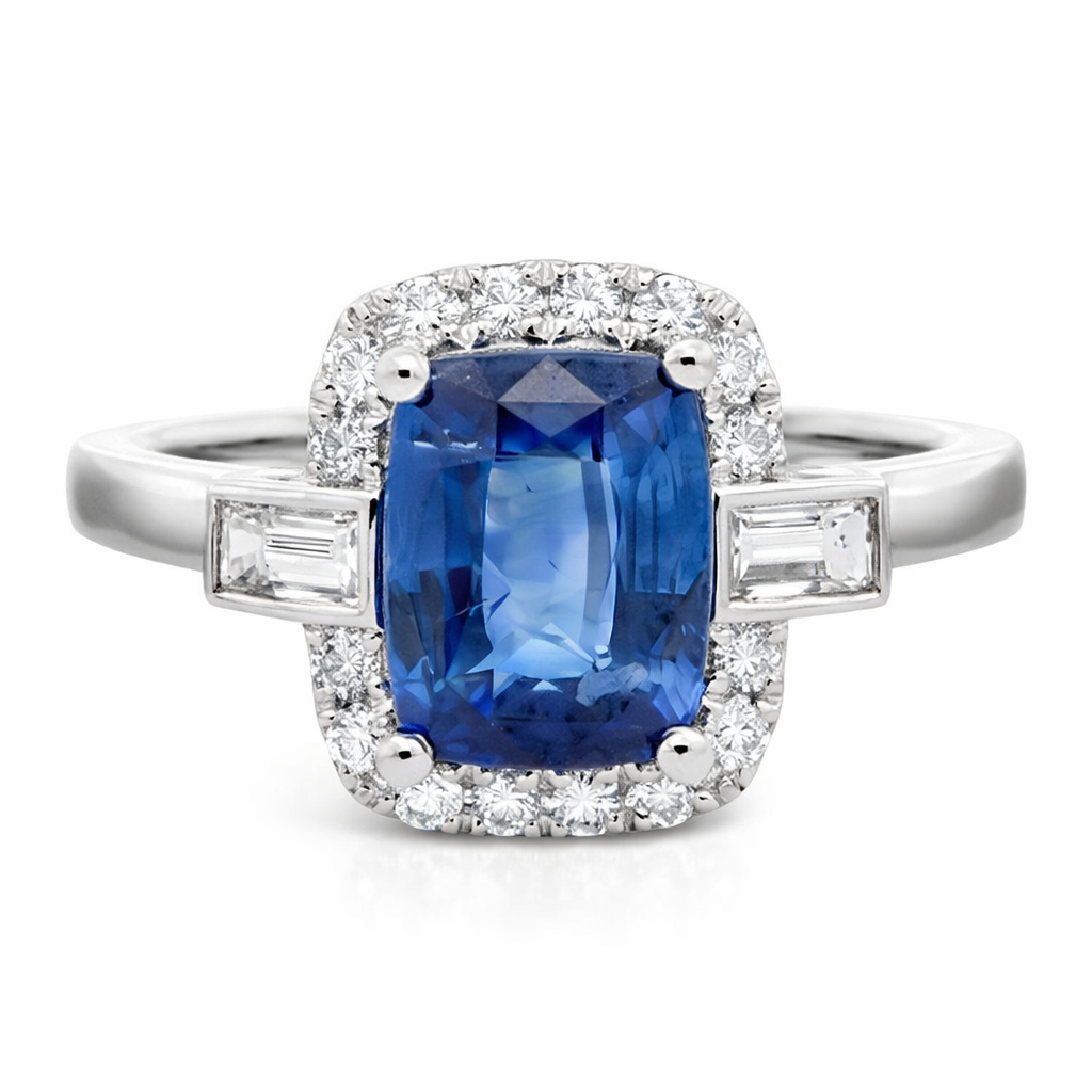 - > Natural Blue Sapphire 2.59ct & Diamond 0.34ct Cushion Shaped Cluster Ring