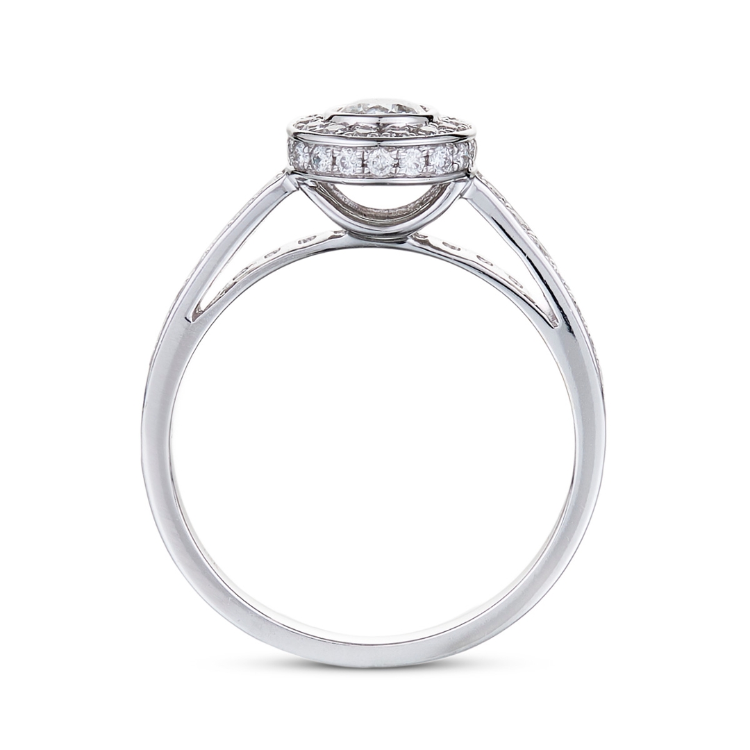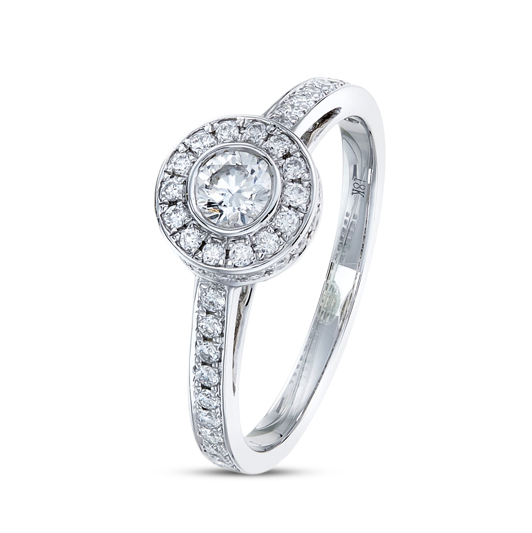 A brand-new, unused, certified natural diamond brilliant-shaped cluster ring, set with a brilliant-cut diamond to the centre & a cluster of brilliant-cut diamonds in a halo setting & to the shoulders, set in 18ct white gold.