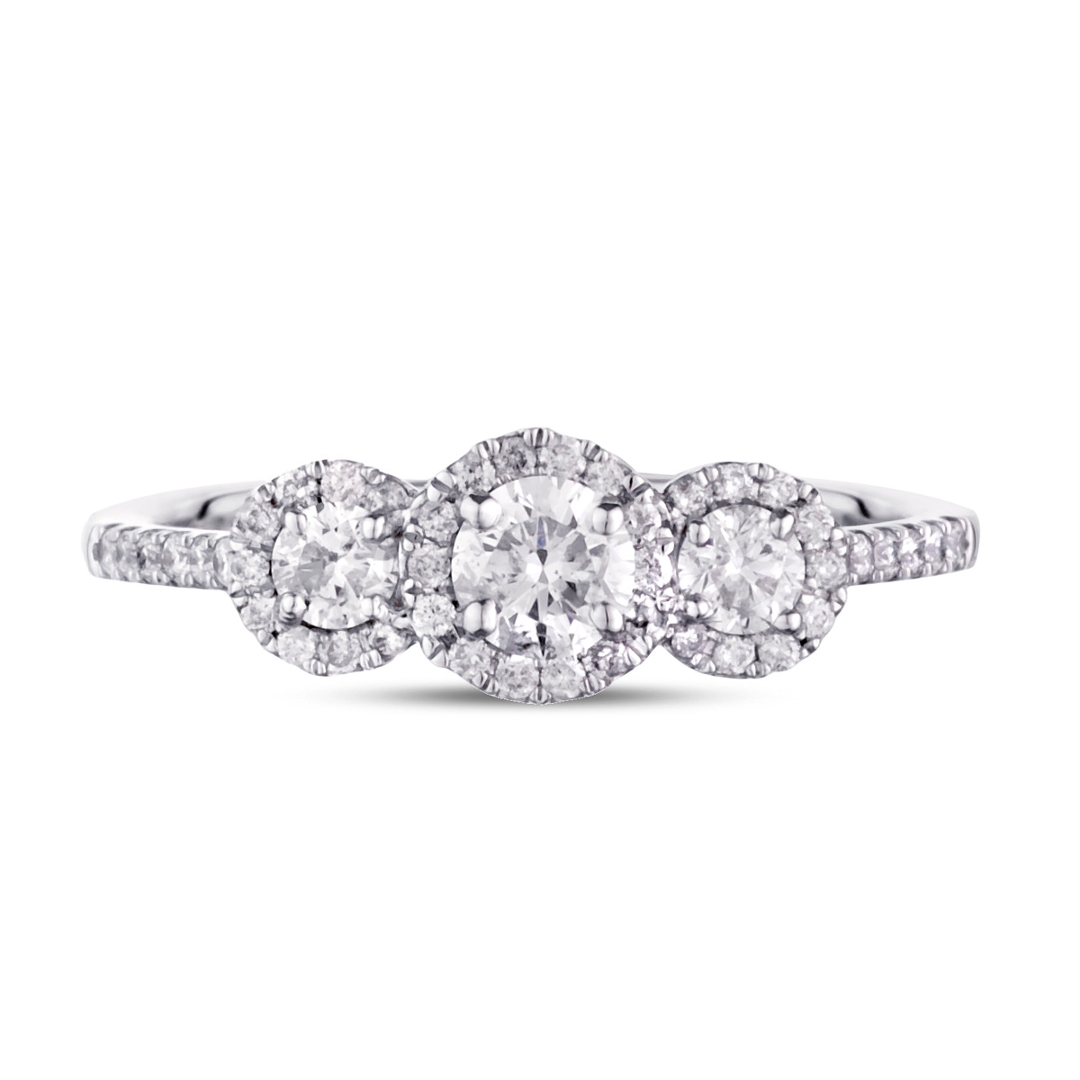 A brand-new, unused, certified natural diamond, brilliant-shaped trio cluster ring, set with a cluster of brilliant-cut diamonds to the centre & shoulders, set in 18ct white gold.