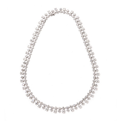 A brand-new, unused, certified 18ct white gold natural diamond cluster necklace, set with a cluster of oval-cut, brilliant-cut & marquise-cut diamonds.