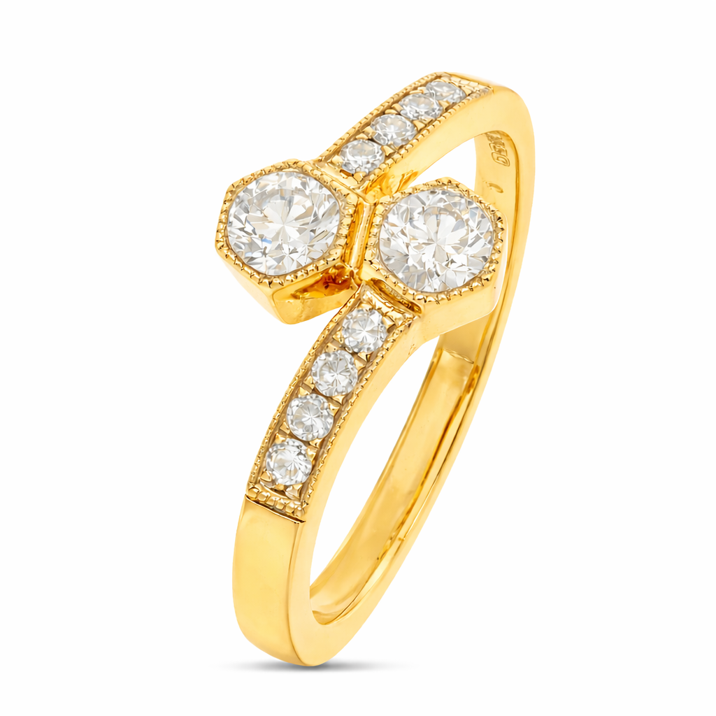 The rich tone of the 18ct gold provides the perfect contrast to the diamonds' crisp fire, giving the ring a luxurious, timeless appeal. Each diamond has been precisely matched and securely set to ensure lasting beauty and symmetry, reflecting exceptional craftsmanship. The flowing design captures both grace and sophistication, making it ideal for everyday wear or as a meaningful symbol of love and commitment.