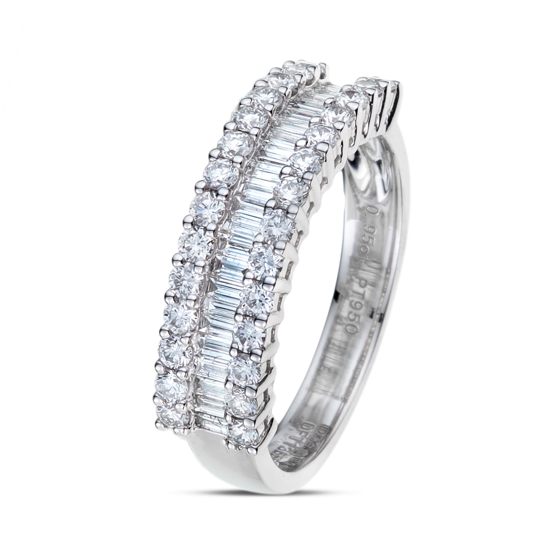 A brand-new, unused, certified platinum ring, this exquisite cluster design is a stunning testament to the timeless beauty of natural diamonds. Featuring a harmonious arrangement of baguette-cut and brilliant-cut diamonds, it radiates a dazzling brilliance that captivates the eye. With a total diamond weight of 0.95ct, these gems boast an exceptional clarity range of VS1-VS2 and a bright E-F colour grade, offering unparalleled sparkle and refinement.