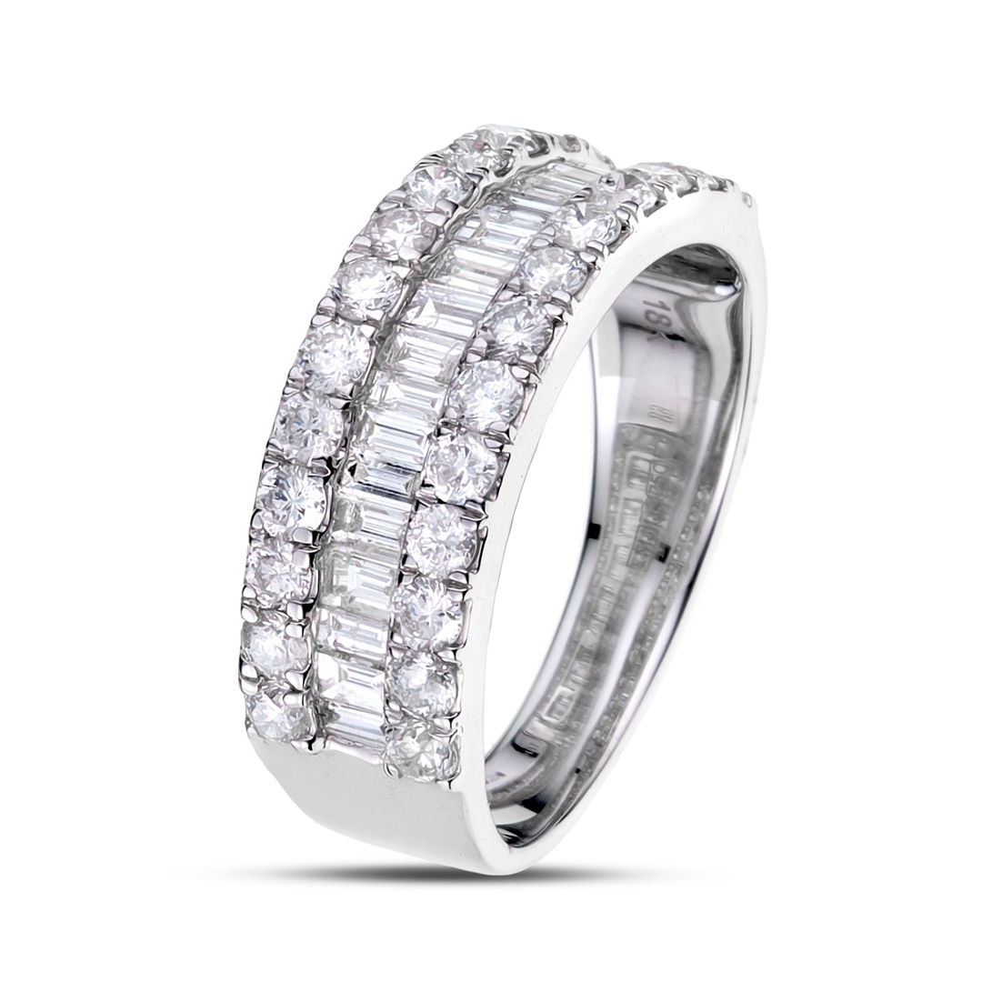 The total diamond weight is 1.60 ct, with each diamond carefully selected for clarity and natural brilliance. Graded SI1-SI2 for clarity and G-H for colour, the diamonds offer remarkable brilliance, reflecting light beautifully with every movement. The brilliant-cut diamonds provide exceptional sparkle, while the baguette-cut diamonds add an elegant contrast, creating a sophisticated design.